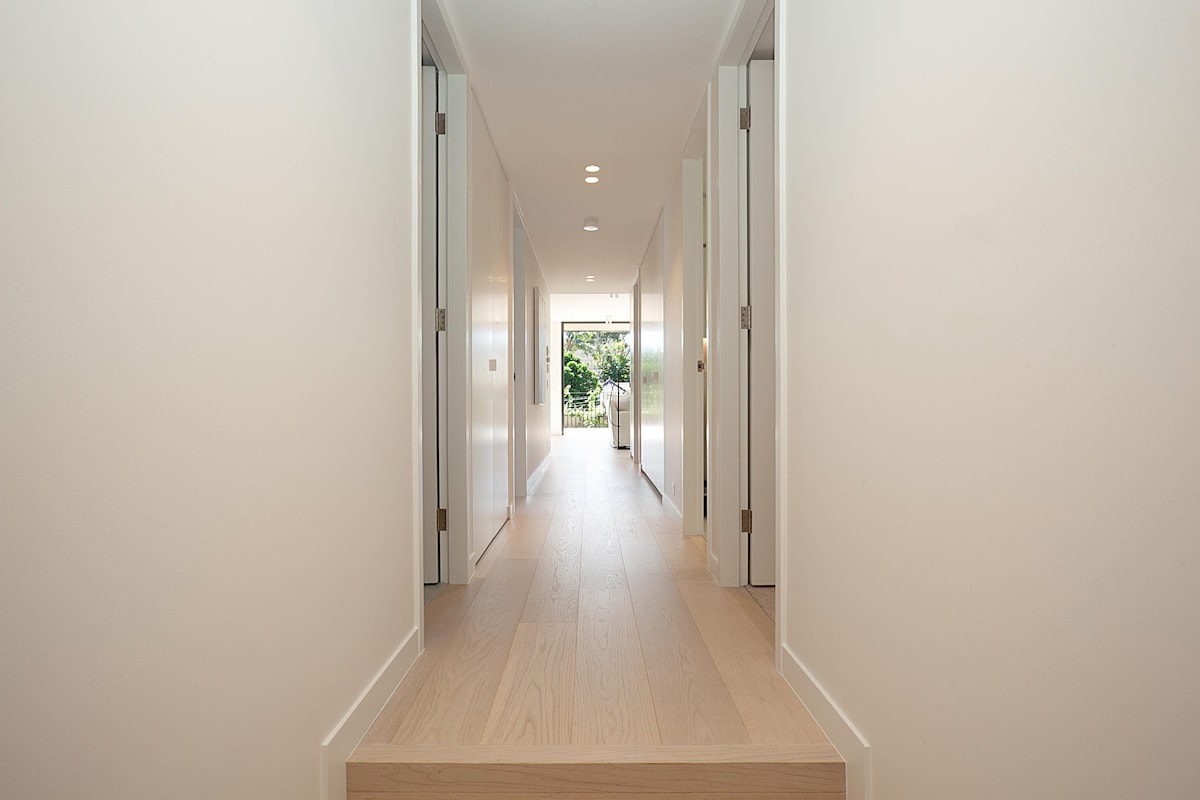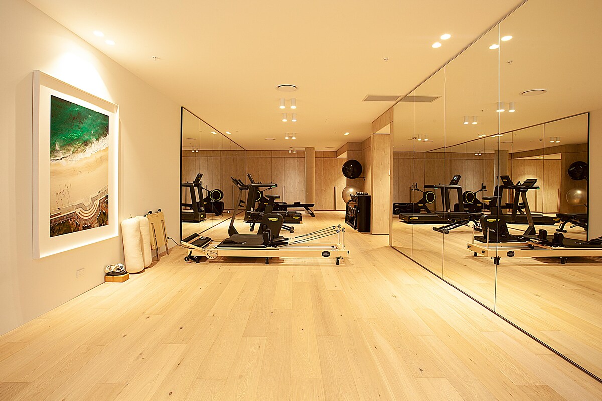 Three sumptuous bedrooms are nestled off the main space, the master with an ensuite featuring a regal marble double sink. There is also a main bathroom featuring a stunning, deep, free-standing bath, as well as a shower room. The shared wellness facilities include a pilates studio and well-equipped gym, alongside an infrared sauna to unwind after a tough workout. You can also stroll through the banana palms in the central tiered garden - a private oasis in the heart of Coogee.
