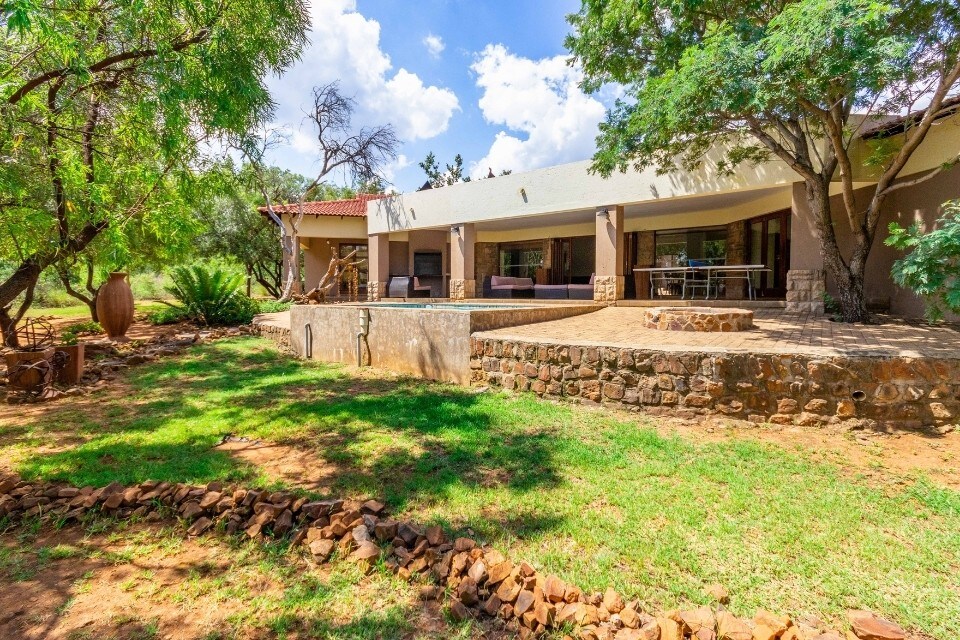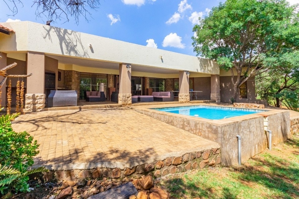 Wonderful family bush villa with inverter, private swimming pool, bushveld surroundings and spacious bedrooms. Ideal spot for a family and/or friends getaway just 1.5 hours away from Johannesburg. The property accommodates up to 14 guests between the main house and a detached cottage.