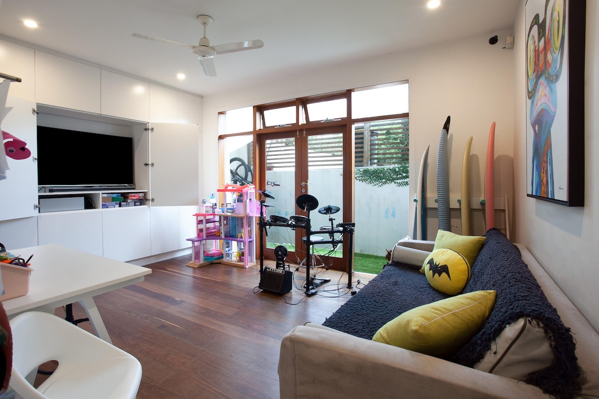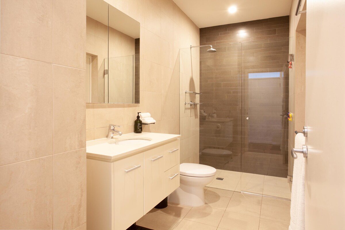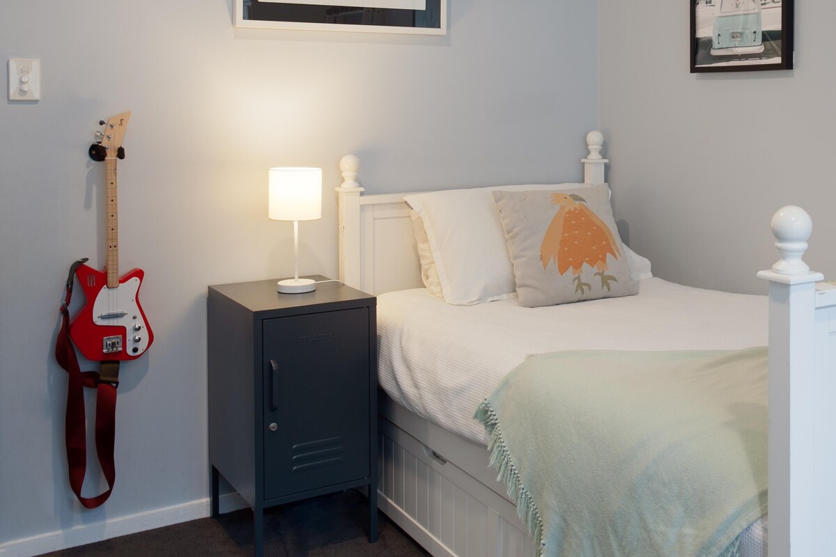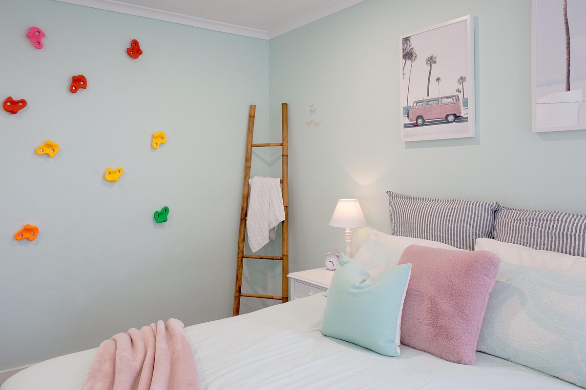 The four bedrooms of this property complete your luxurious escape. For the ultimate privacy, you'll find a private studio on the lower ground, boasting a Queen bed, ensuite and kitchenette. This is the ideal escape for teens, grandparents or friends wanting their own space. A further ensuite master bedroom on the first floor boasts a king bed. Also on the first floor is a Queen bedroom and a King single room, with a playful climbing wall feature, as well as a trundle bed if you need additional space. There are also three bathrooms for the ultimate convenience during your stay.