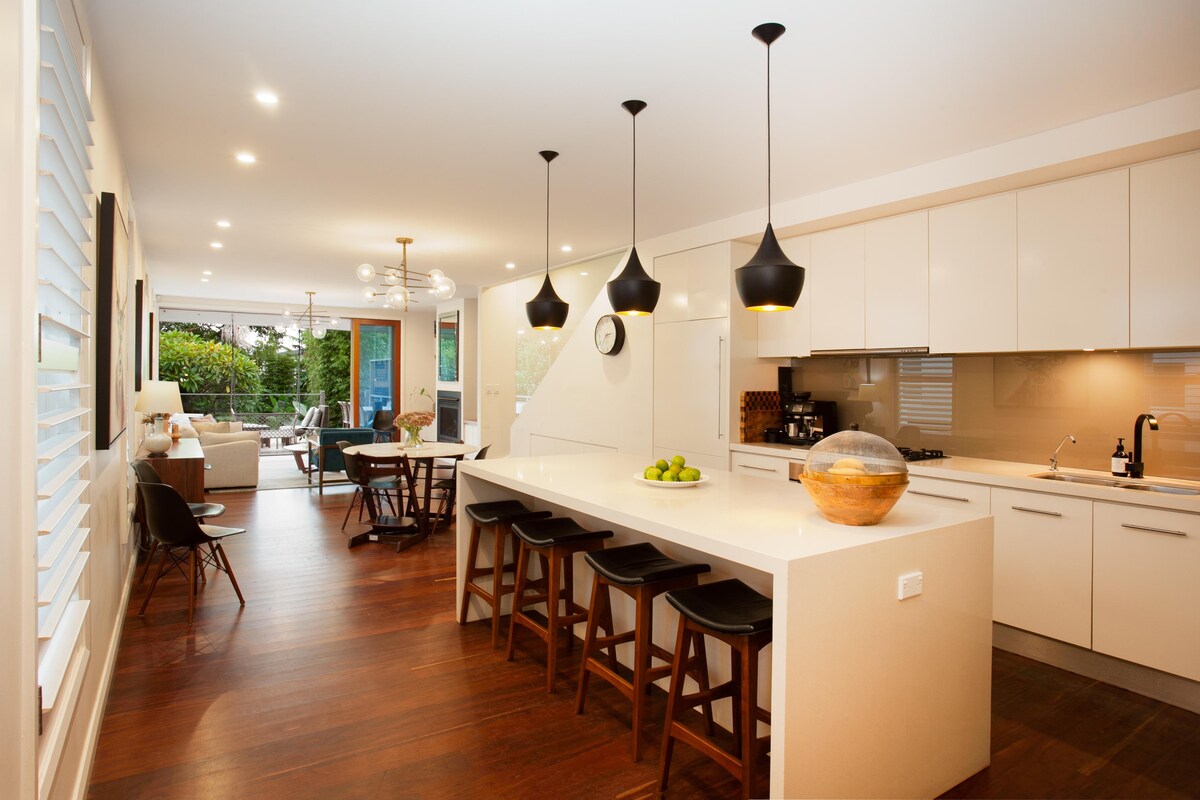Split over 3 levels this stunning home boasts all you could need for a relaxed stay, whether travelling as a family or a group of friends. The ground floor reveals a chic open-plan kitchen diner, perfect for days spent relaxing as a group. Polished wood floors reflect the light from the patio door connecting the elegant living space to the sun deck and alfresco living. Light spills further over the formal dining table, onto the grand kitchen island, illuminating the full kitchen. For more entertainment options to enhance your stay, there is a rumpus lounge with TV and plenty of space for games and activities. Spill out further into the private garden to enjoy a BBQ, or a dip in the pool and spa.