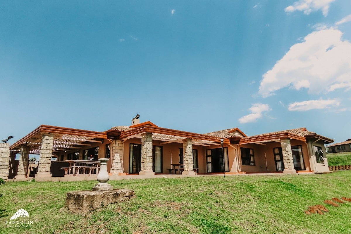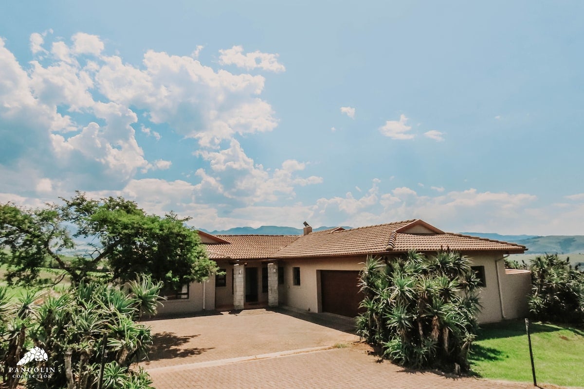 Your Drakensberg escape awaits in this 4 bedroom holiday home (with backup power), set amidst an aloe garden with uninterrupted views of Cathkin Peak, Giants Castle and Champagne Castle.