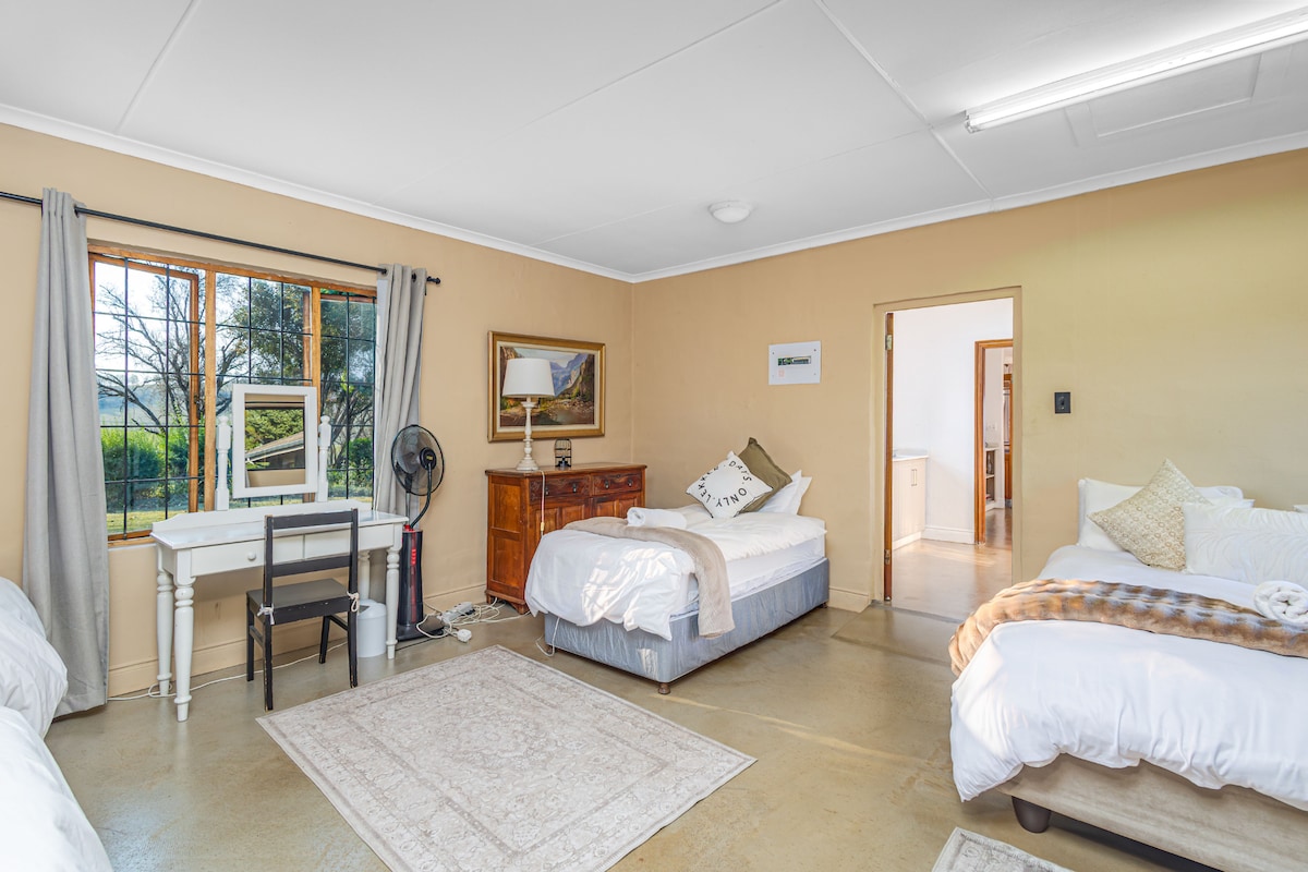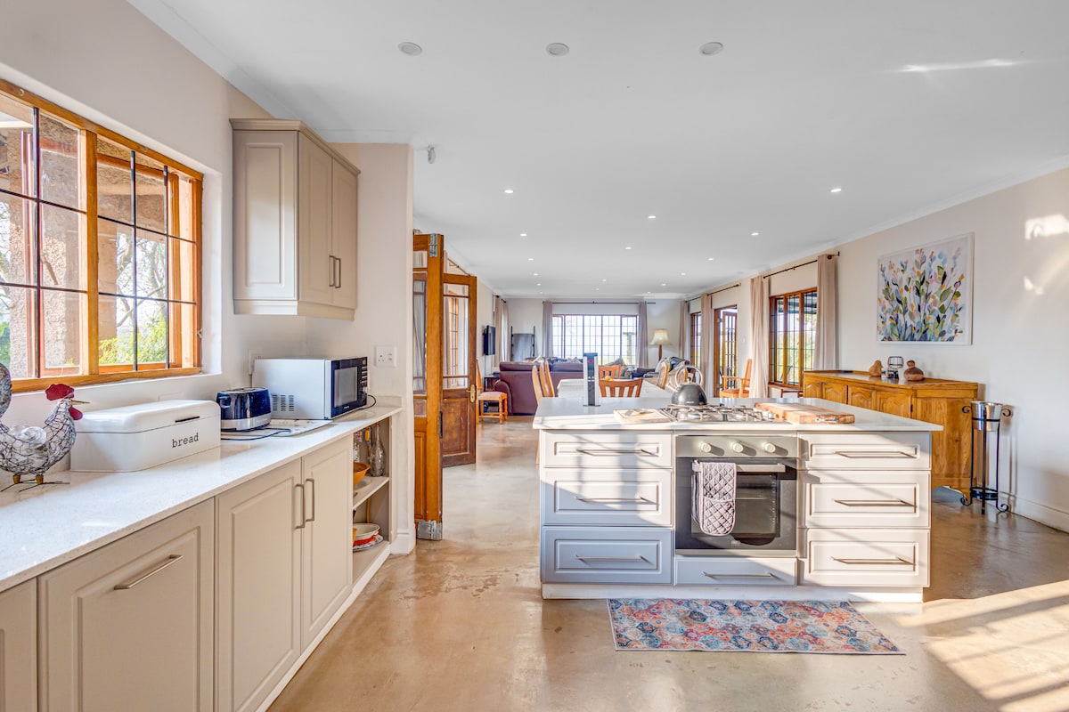 Had a great time! Beautiful views and being surrounded by a game farm made it even better🥳 The house had everything we needed and a great outdoor area to have fires and also braai. It also has a cozy indoor fireplace perfect for reading. Monks Cowl is also super close where there are amazing hikes up in the mountains.
