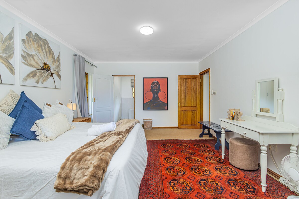 Located in Cathkin Park, also known as Champagne Valley, you are surrounded by some of KwaZulu-Natal’s most iconic landscapes. The Drakensberg Boys Choir performs nearby, and hiking or cycling trails allow you to experience the mountains up close. Local curio shops, restaurants, and a supermarket are within reach, while golf enthusiasts will find two scenic courses framed by dramatic peaks.