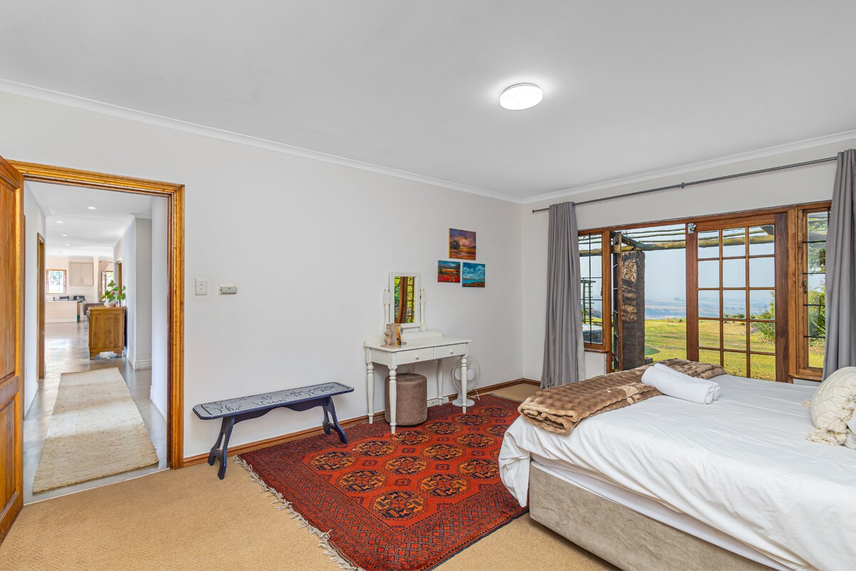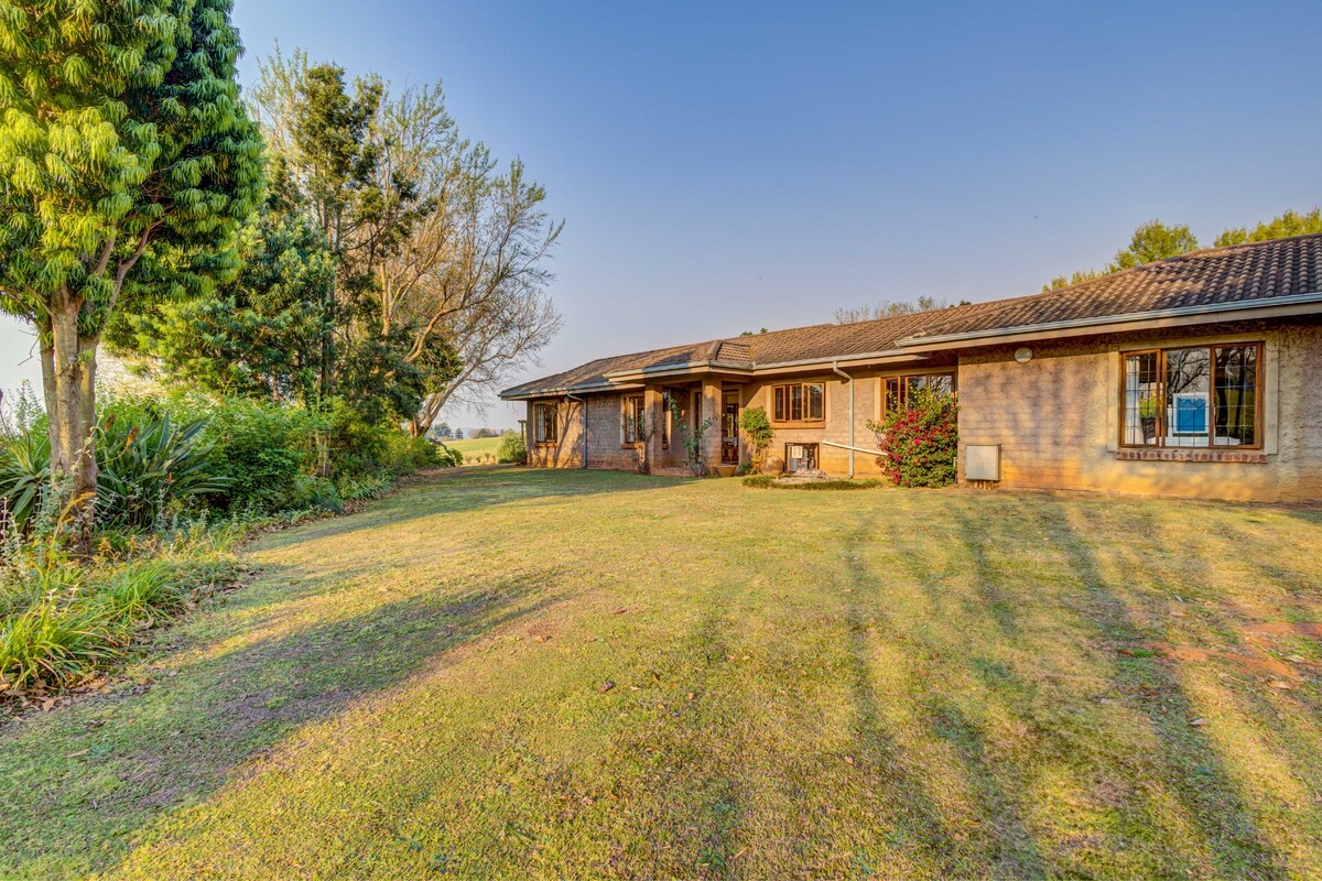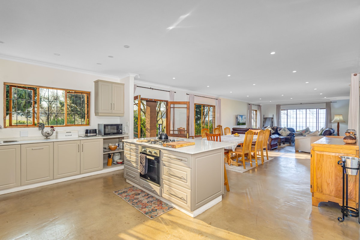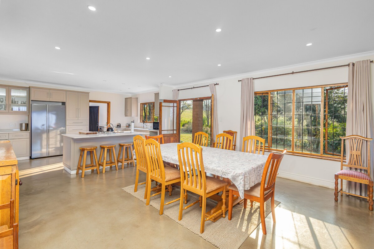 Guests will have full access to the entire farm home, including all 4 bedrooms, 4 bathrooms, the fully equipped kitchen, and living areas. The undercover entertainment area is perfect for group gatherings and outdoor dining, while the expansive property offers plenty of room for farm walks.There is ample parking available on-site, and the home is just 2 km from local conveniences such as the supermarket, bottle store, and Champagne Sports Golf Course.