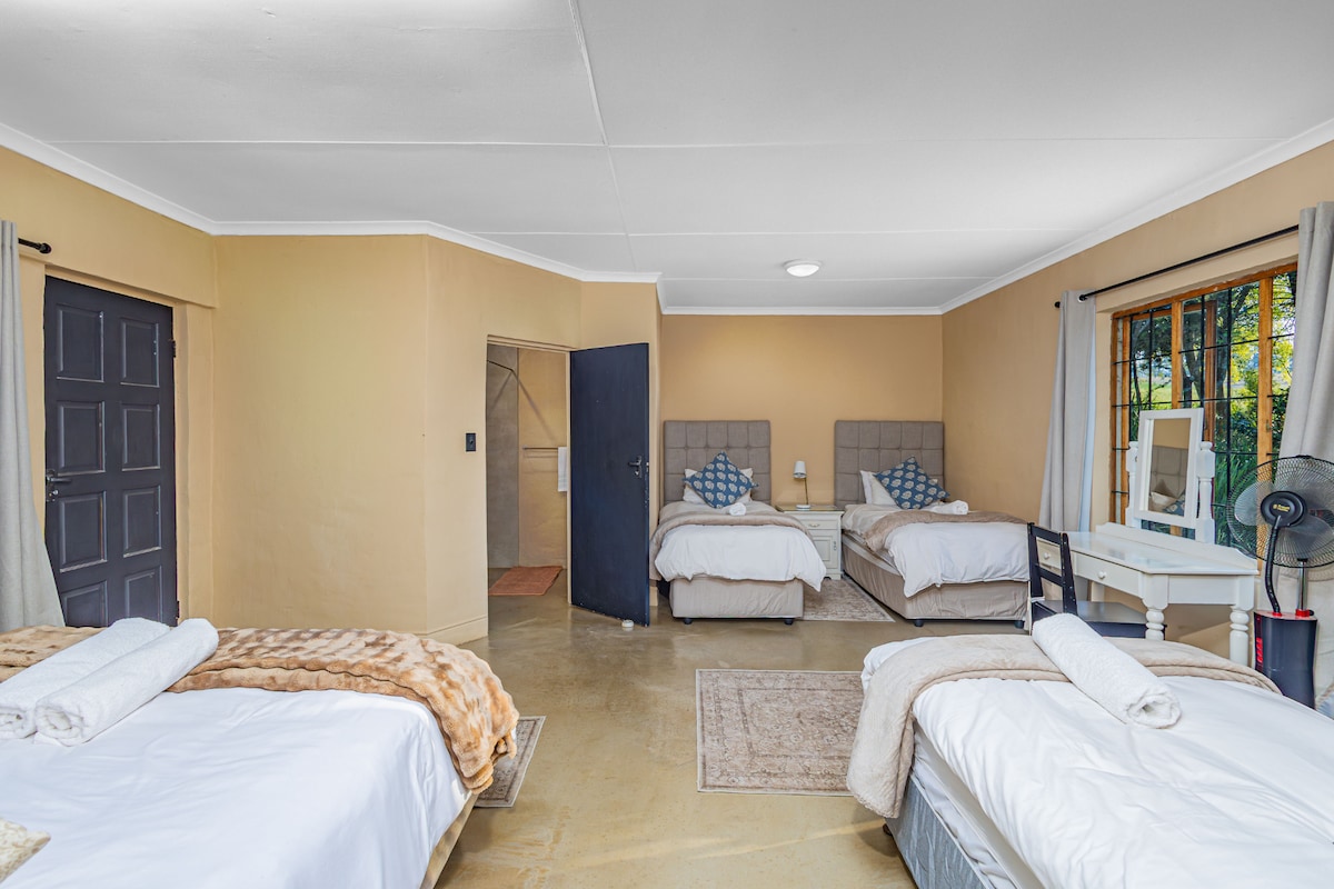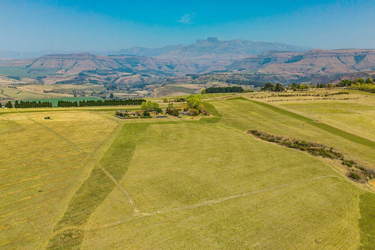 Wake to the quiet sweep of mountain air and the soft glow of sunlight spilling across wide open valleys. Step outside and take in the rolling peaks of the Central Drakensberg, where days begin with bird song and evenings settle around the warmth of a fire pit under star-filled skies. This is a place where you can pause, breathe, and enjoy simple moments surrounded by natural beauty.Sleeping arrangements