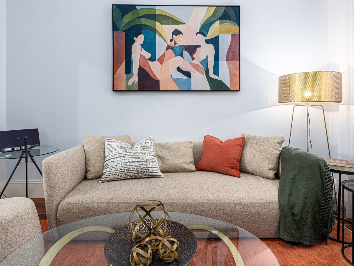 Great neighborhood, close to a LOT - bus stops, downtown, restaurants, and it's a lovely area to walk around. We were 6, (3 couples), and the beds were really comfortable, and the space was do-able. The downstairs (basement/garage level half underground) was a bit damp as there are few windows, but a/c is available which helps. The upstairs bathroom is lovely and a real treat. The downstairs bathroom is tiny, but it's a second bathroom, so do-able. We had some issues with the alarm, and the managers were very kind & cooperative. I gave it a 4 rating because it was nice, but not extraordinary as a "5" would indicate, nor an incredible bargain. We all left happy, and we'd use it again though.