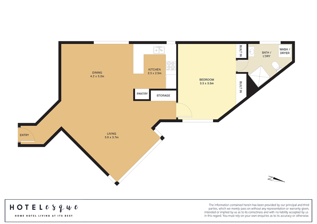 This pristine one bedroom apartment offers direct level entry to a security block. The open - plan kitchen and dining area is well designed and offers all you need to entertain a small and cosy group.