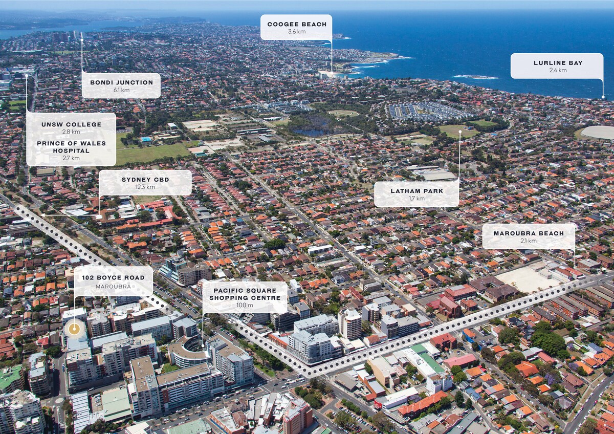 This perfect central location has restaurants, cafes, and transport on the doorstep. A supermarket is directly across the road. Take part in everything this centrally located community has to offer.The University of NSW and Prince of Wales Hospital are minutes away and easily accessible by public transport at the end of your street. The AJC (Australian Jockey Club) and Alliance Stadium are a short ride away by bus or lightrail and it is a short ride into the city center. The sparkling waters of Maroubra Beach and Coogee Beach are only a few minutes drive away.