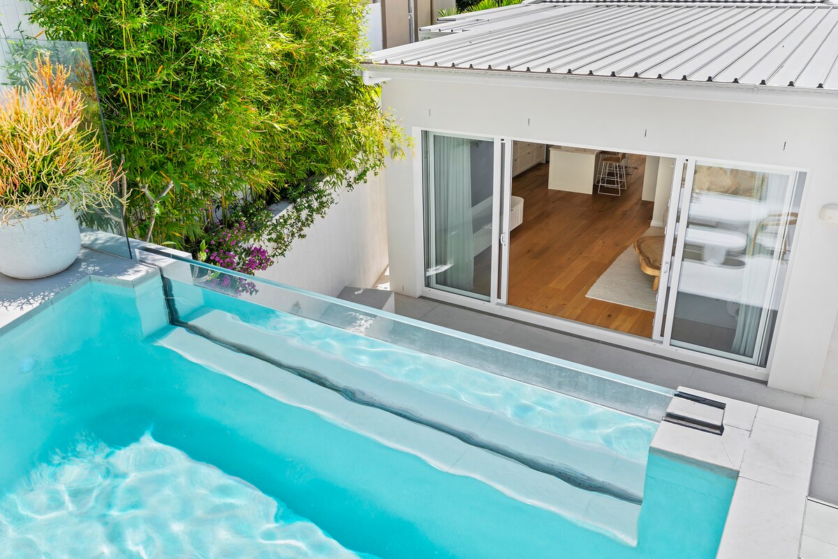 On a quiet leafy street the home offers three bedrooms, two bathrooms, spacious open plan living and kitchen plus an additional living space downstairs. This is inclusive of a pool in the rear enhancing the resort style private yard. Spacious and comfortable, this home offers a unique Clovelly beach house living experience.