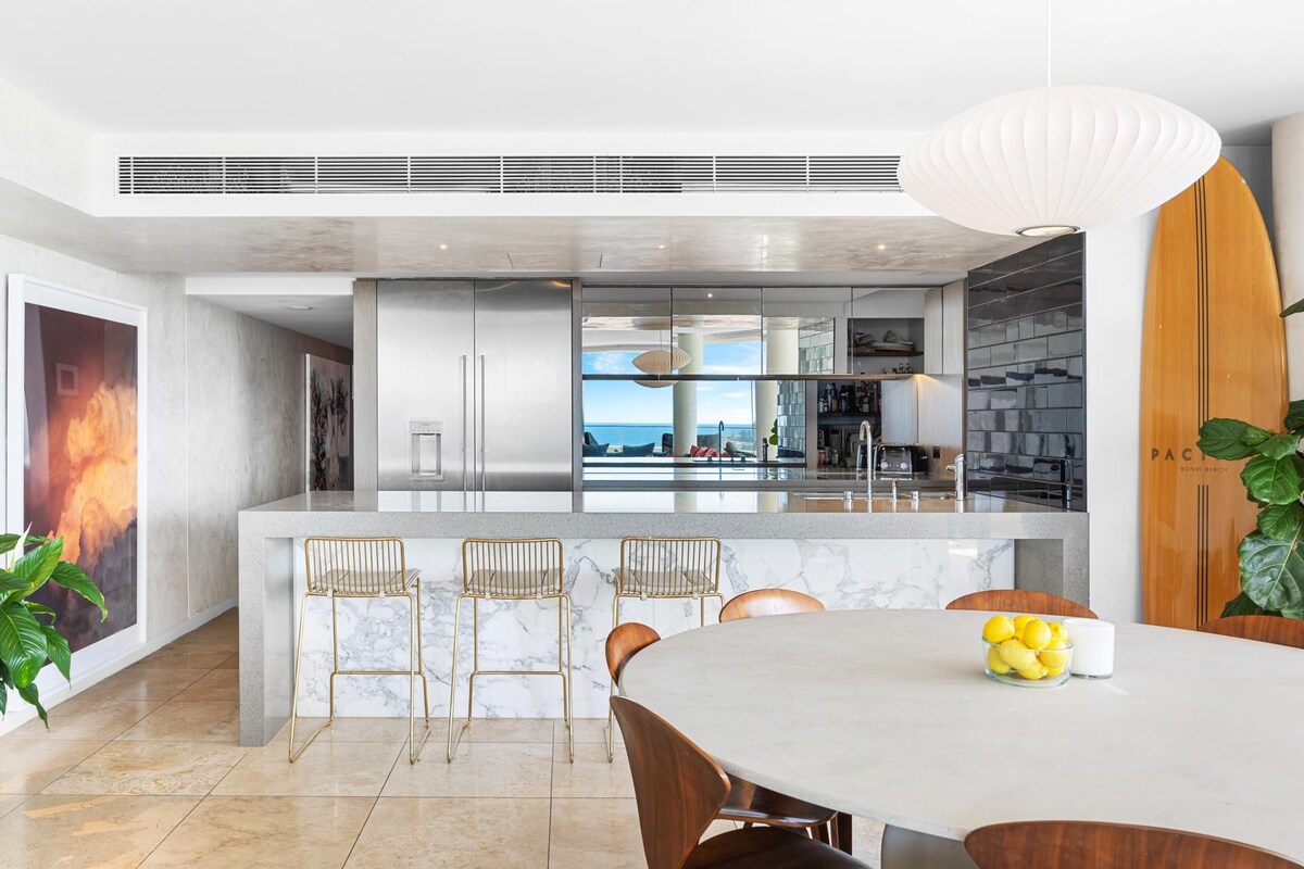 Luxury three bedroom sub penthouse apartment located in the exclusive Bondi Pacific Building with panoramic wide Pacific Ocean views.