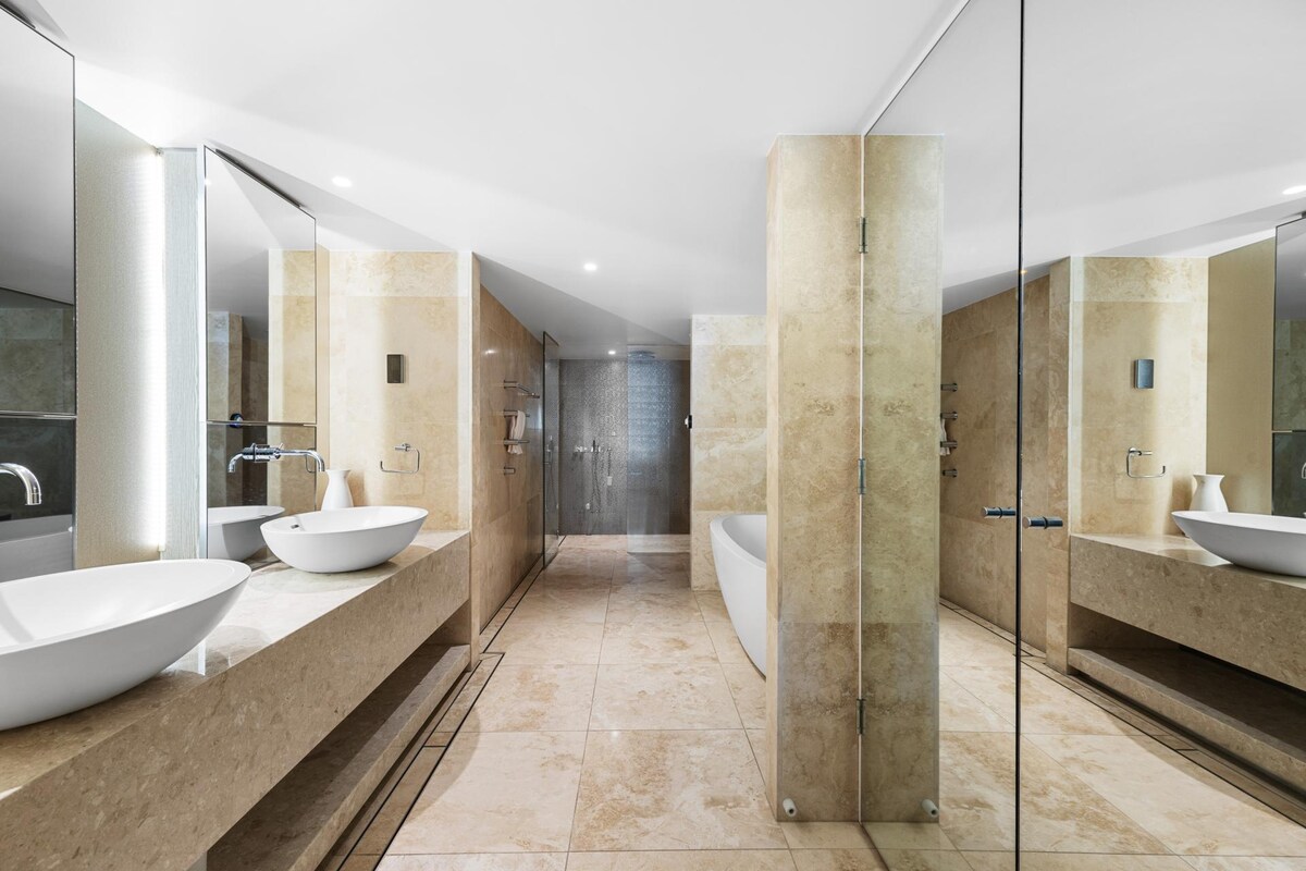 Enjoy the lightfilled space with travertine finishes, floor-to ceiling glazing and an effortless flow to the terrace.