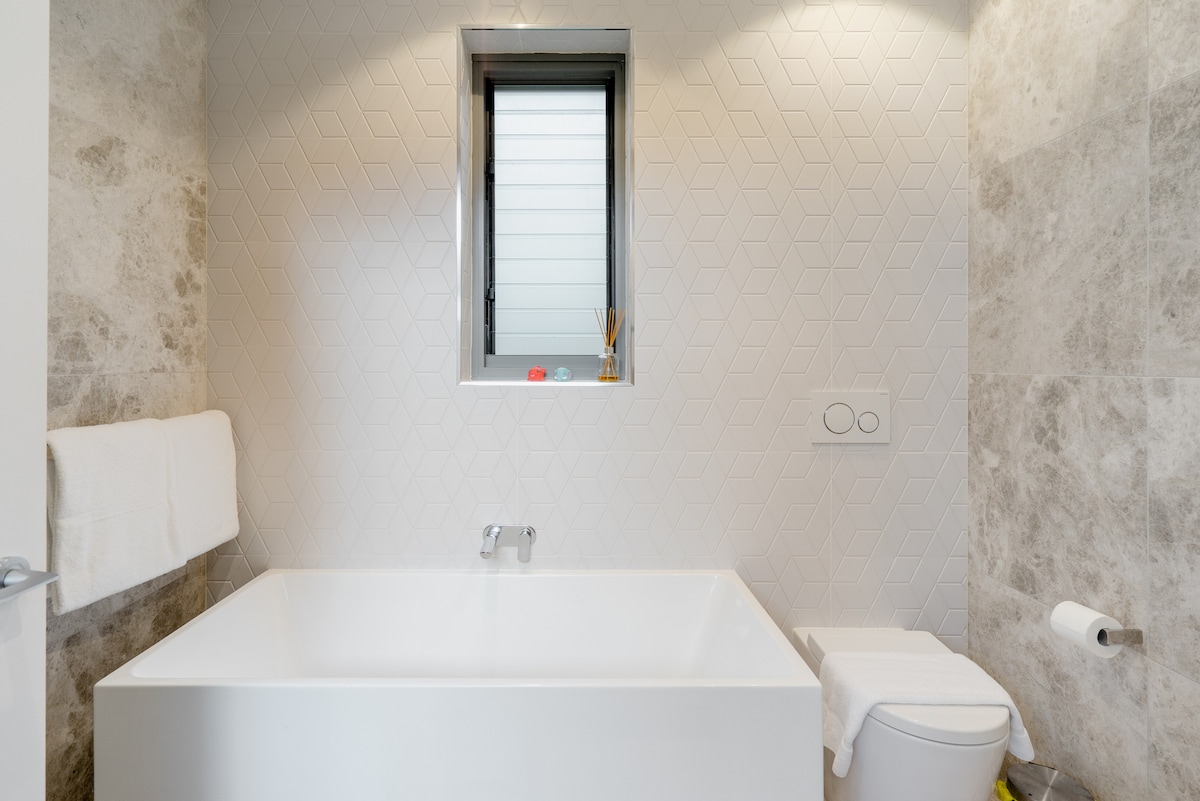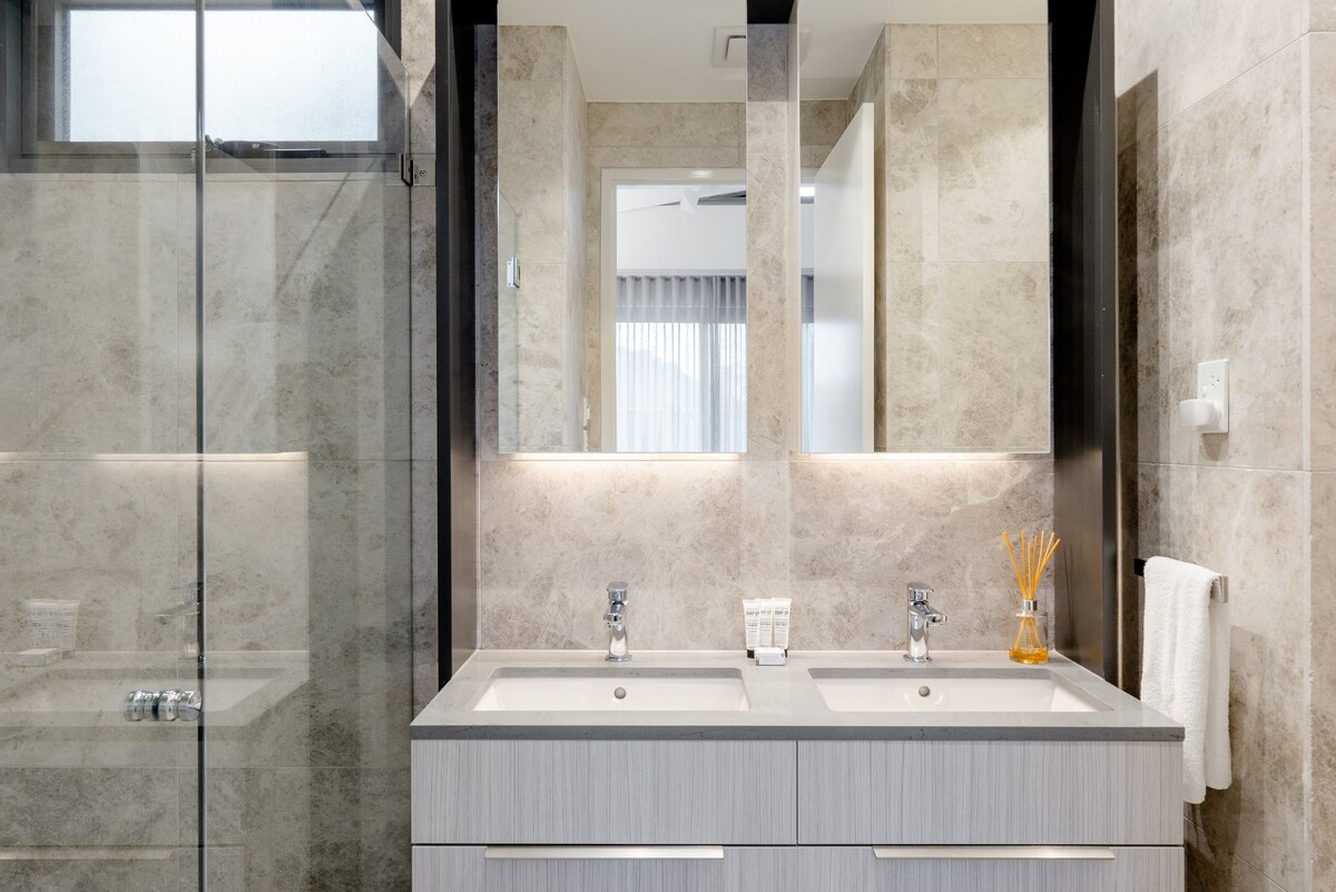- Bedroom, bathroom and built in laundry styled with contemporary charcoal finishes and luxe soft furnishings.