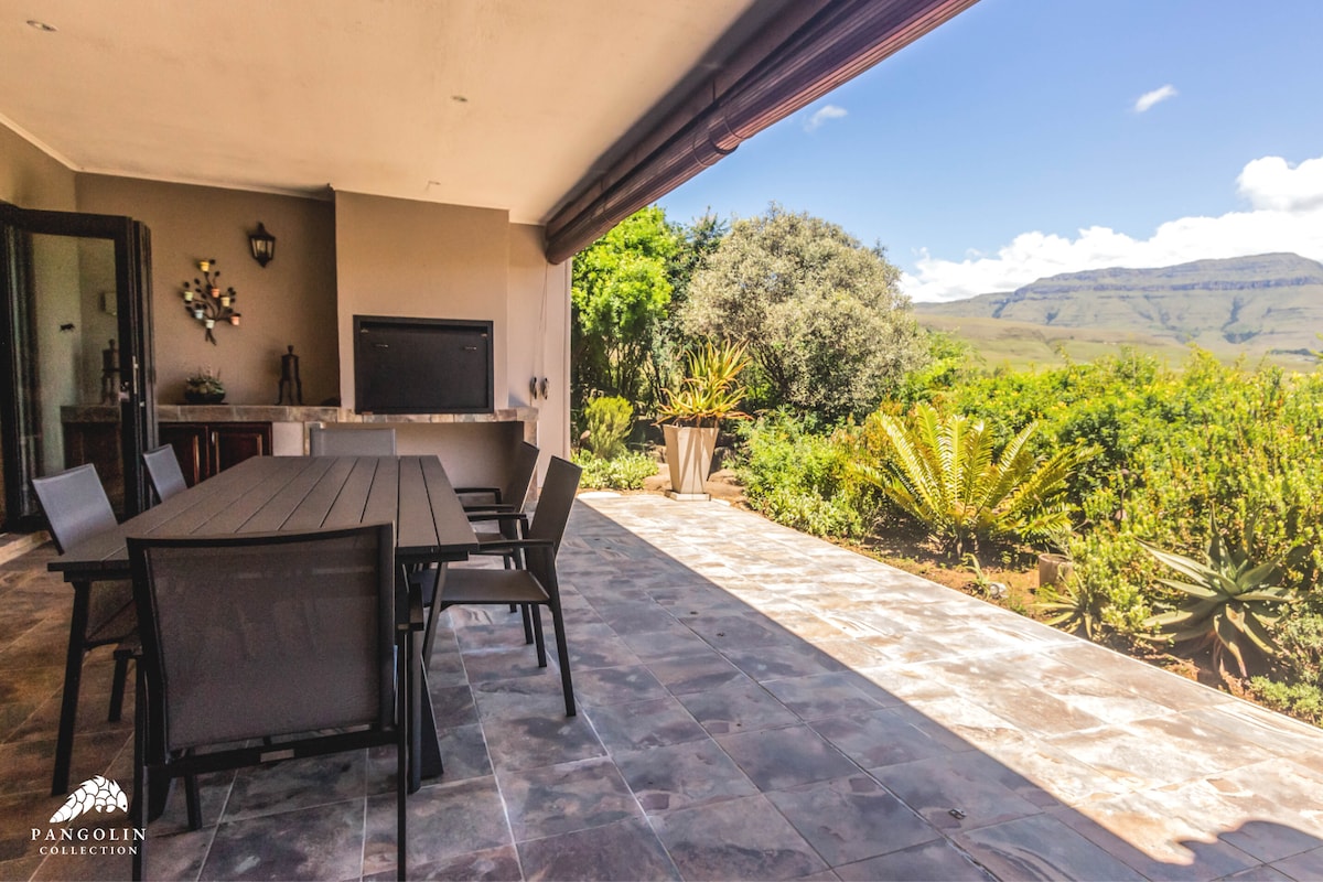 Aleah is a haven of calm set in the heart of Cathkin Estates, a 1000-hectare wildlife sanctuary of rolling grasslands, streams, and forest. The home’s open-plan living area flows onto a partially covered patio, perfect for dining outdoors or simply admiring the views of the Drakensberg escarpment.Inside, three spacious bedrooms with generous cupboard space provide comfort for families and groups. The fully equipped kitchen invites shared meals and laughter, while evenings call for a glass of wine and a good book by the wood-burning fireplace. With solar backup power, you can relax knowing your stay is smooth even during loadshedding.