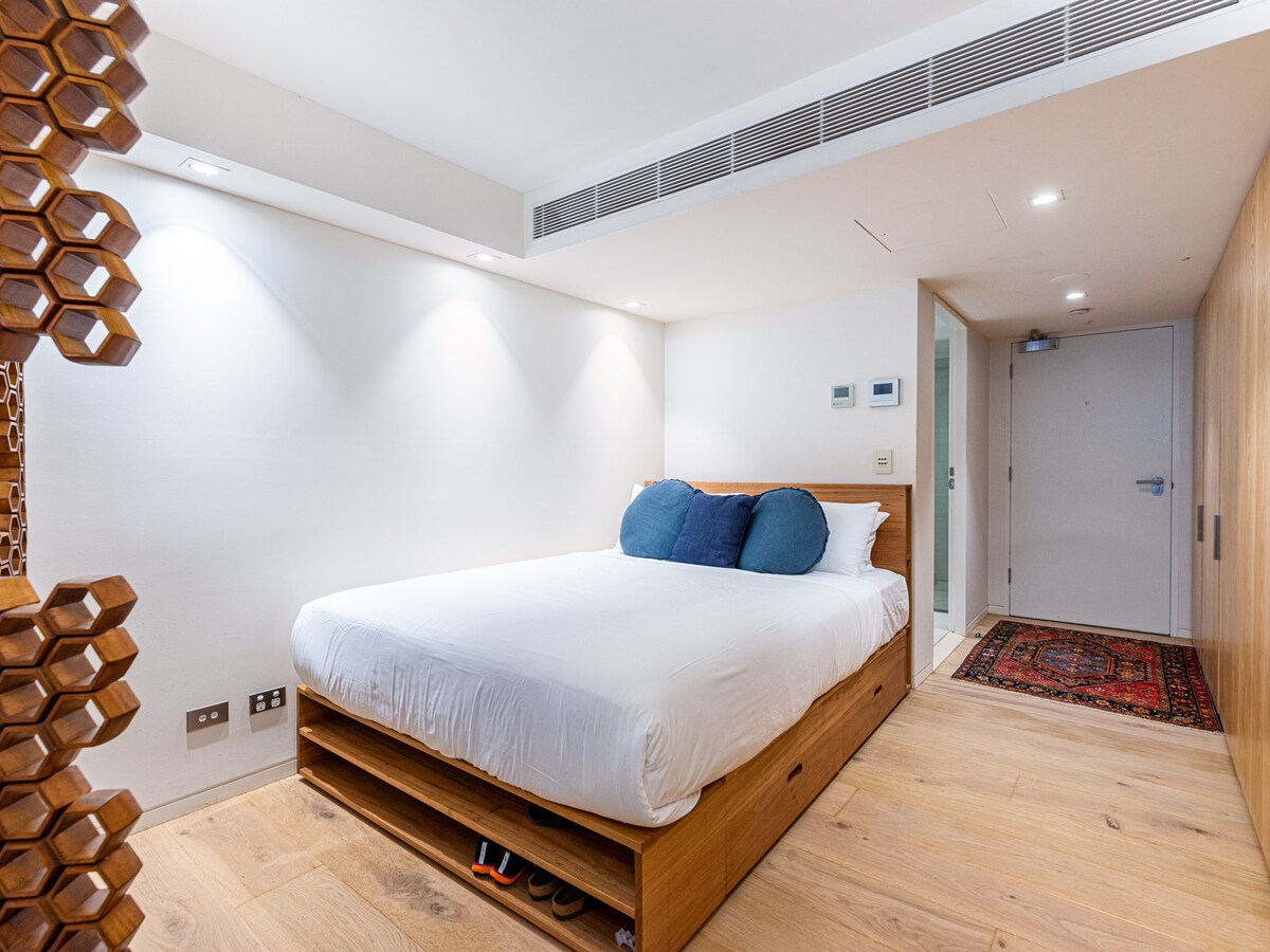 This studio apartment enjoys views of the internal courtyard set in the iconic Pacific Building