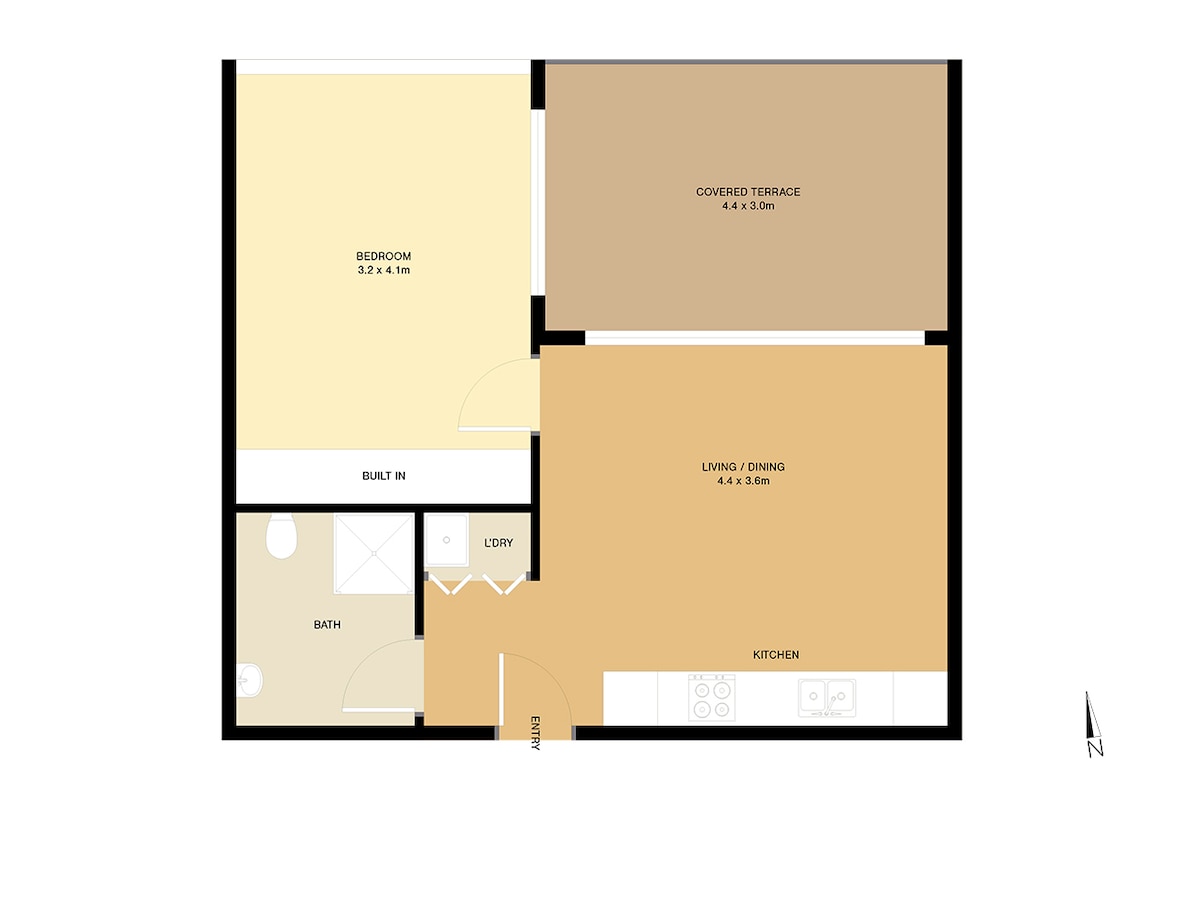 - Luxury bedroom with built in wardrobes- North facing terrace with direct access from living area and bedroom