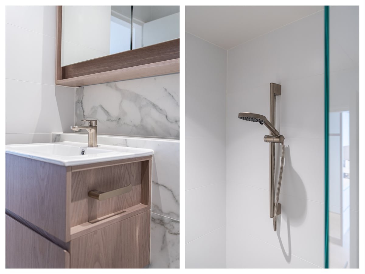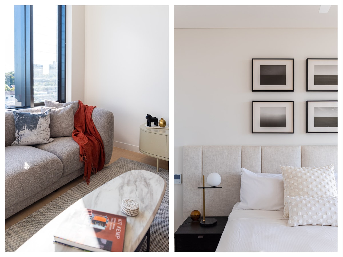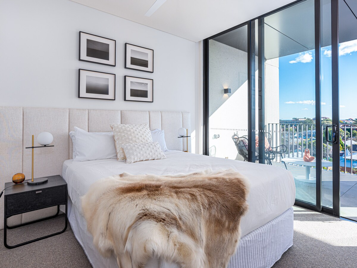 Bedroom, bathroom and built in laundry styled with contemporary finishes and luxe soft furnishings.
