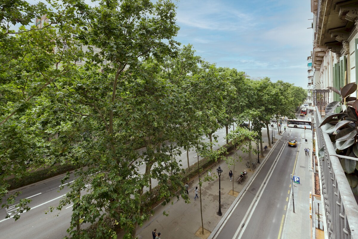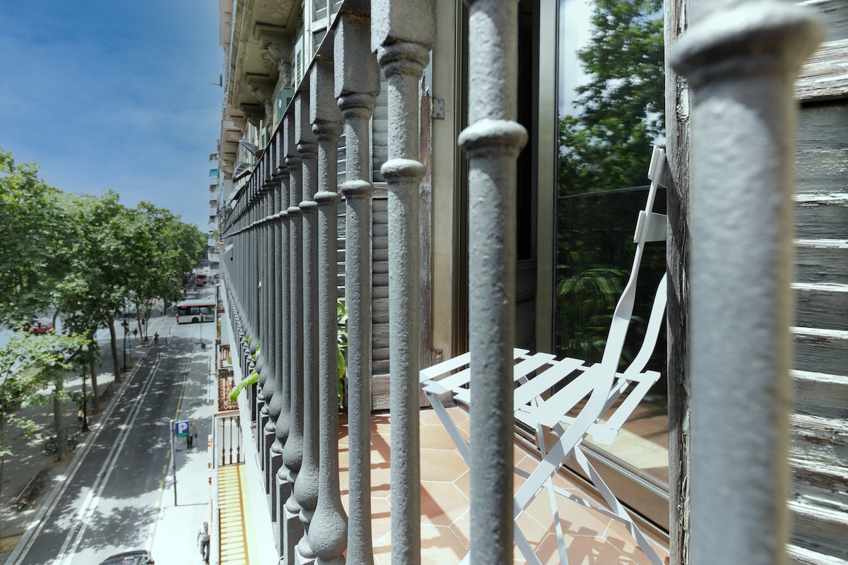 # Important note: all legal and licensed apartments in Barcelona are obliged to pay a tourist tax, which is excluded of the prices. Read more below in "other things to note".The apartment is on the second floor with an elevator and has a living-dining room, a well equipped kitchen with washing machine, toaster, microwave, oven, dishwasher, a dining table, TV and free WiFi internet. It also has two balconies overlooking the famous and busy street Gran Via de Les Corts Catalanes. The bathroom has a shower and one sink.