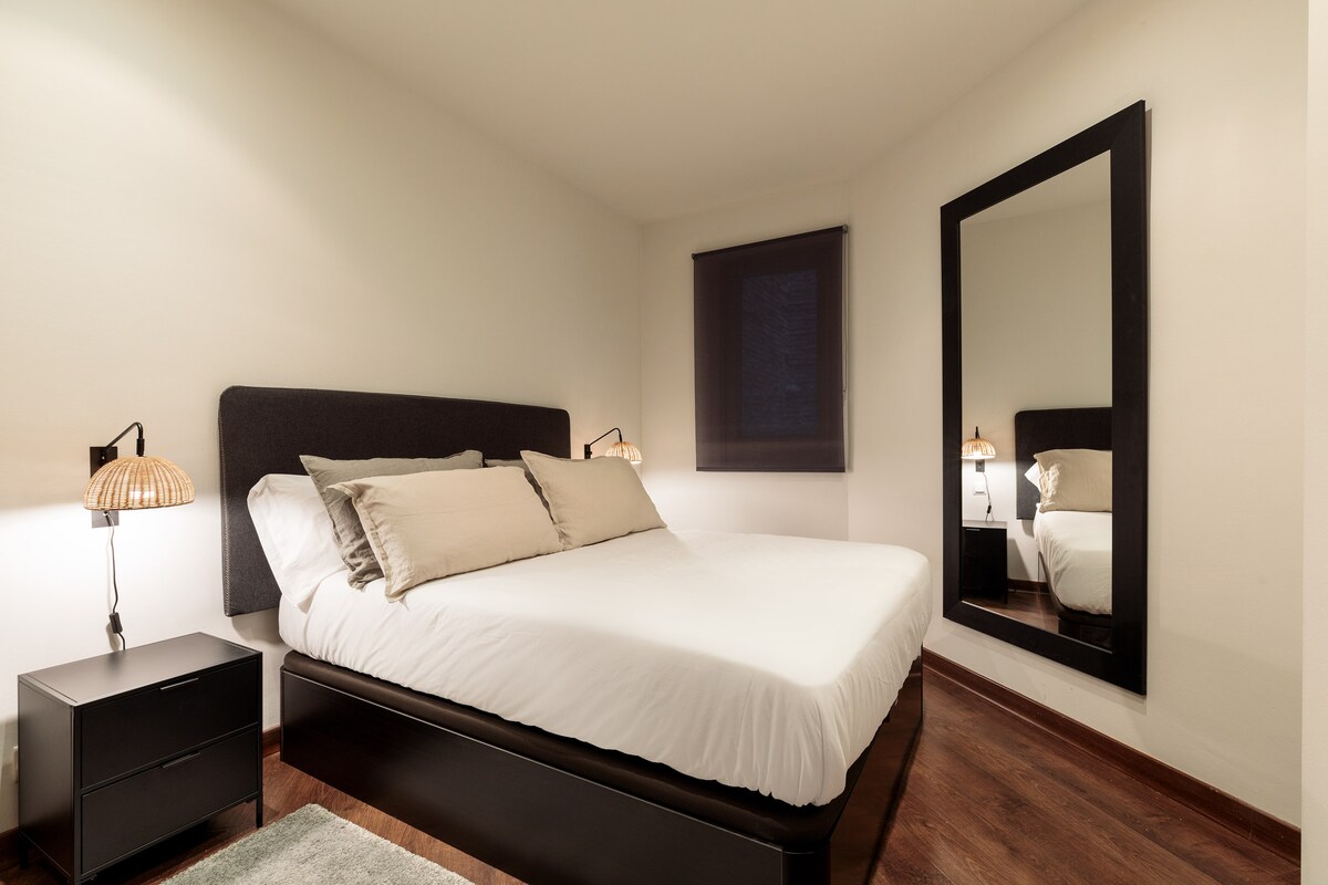 Terrific location! A block from metro and Sagrada. Space is great for two - sizable living room/dining area. Bed seemed a queen size - quiet bedroom in the back. Living room has some street boise despite the double pane glass. Other than some repairs needed in the bathroom and some grout needed, place was really great!