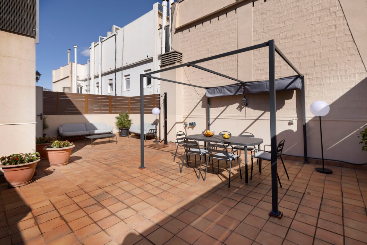 Positioned near Clinic and Diagonal, Barcelona's vibrant core is just moments away. This residence is a prime choice for families, couples on a romantic escape, or professionals on business, accommodating up to 4 guests with ease.Covering a generous 80 m2, the apartment features 2 meticulously designed bedrooms, a bathroom equipped with a bathtub, a commodious living space, a cutting-edge kitchen, and an inviting balcony. Moreover, guests have the privilege of accessing the rooftop terrace, located a mere floor above.