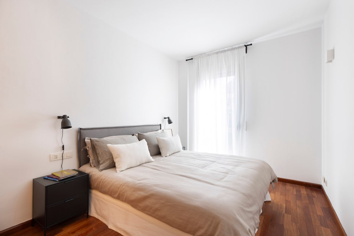 The avant-garde kitchen effortlessly merges with the living area. To enhance your stay, the apartment is furnished with air conditioning, a flat-screen TV, and swift WiFi connectivity.