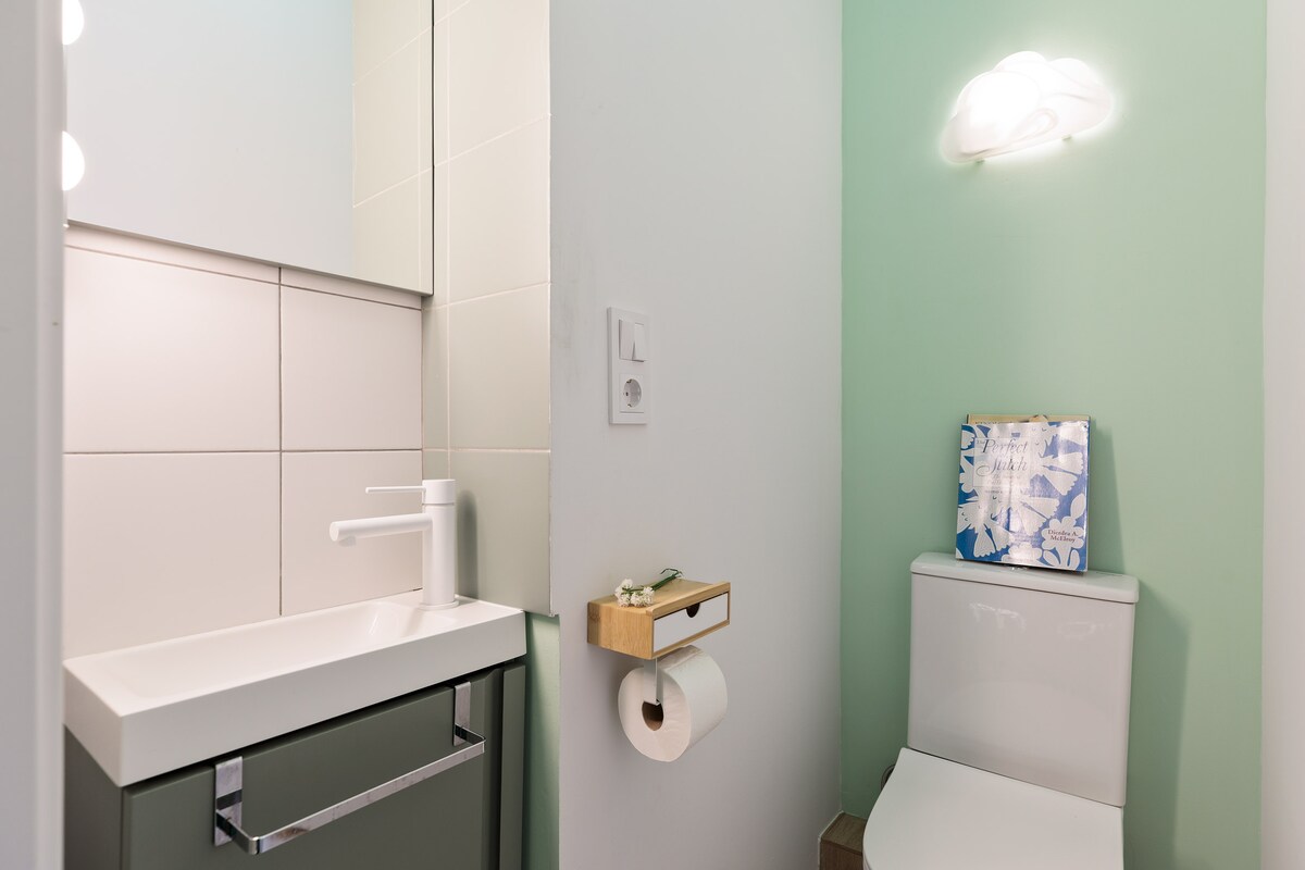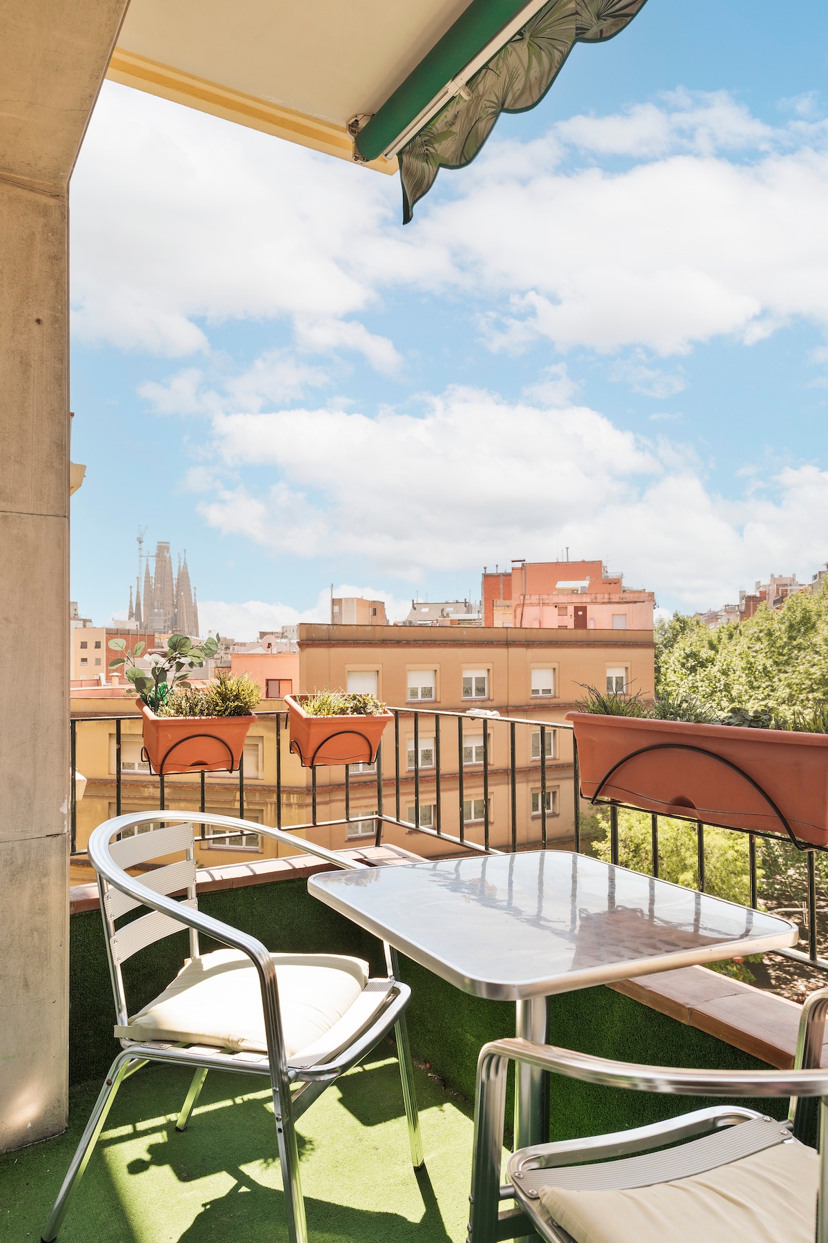 We had a pleasant week in this well-located apartment, close to the metro and offering a very nice view of the Sagrada from the balcony. The apartment is original and well laid out, with 2 very practical toilets. Some points could however be improved: the cleanliness was not impeccable (cushions, bedside tables and a stained shower curtain), and some equipment should be repaired or replaced — including the dishwasher, the coffee machine filter, and the lack of cutlery for 6 people. There was also no hot water in the kitchen sink or gas lighter for the gas stove. Regarding the insulation, we received two calls from the agency because of noise-sensitive neighbours, while we were just having a normal discussion with 5 people. Conversely, we were sometimes awakened in the morning by their television. Despite these small inconveniences, we had a very good holiday and have good memories of it.
