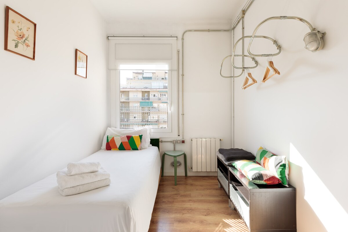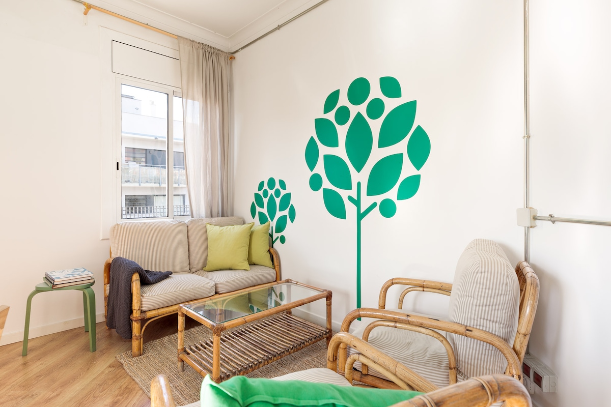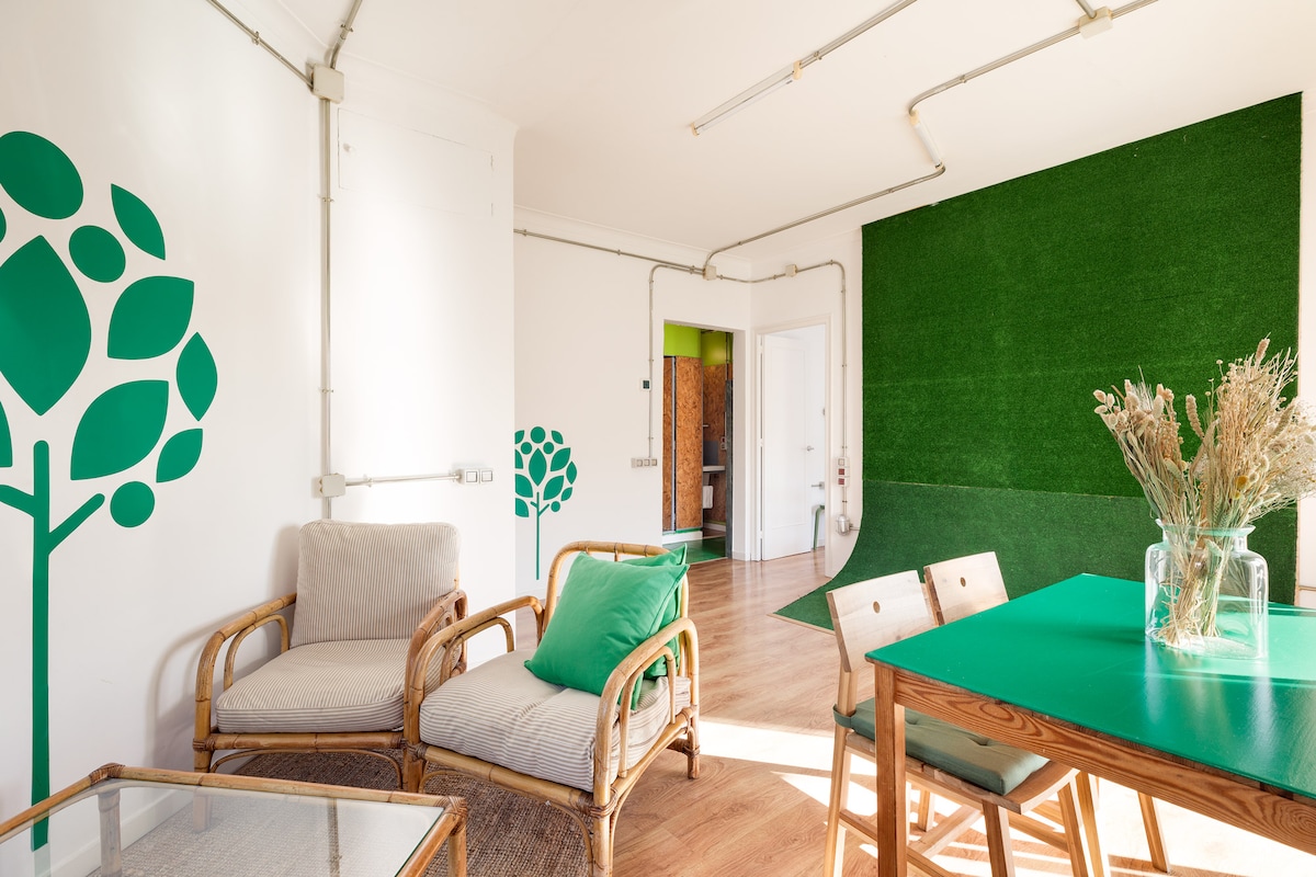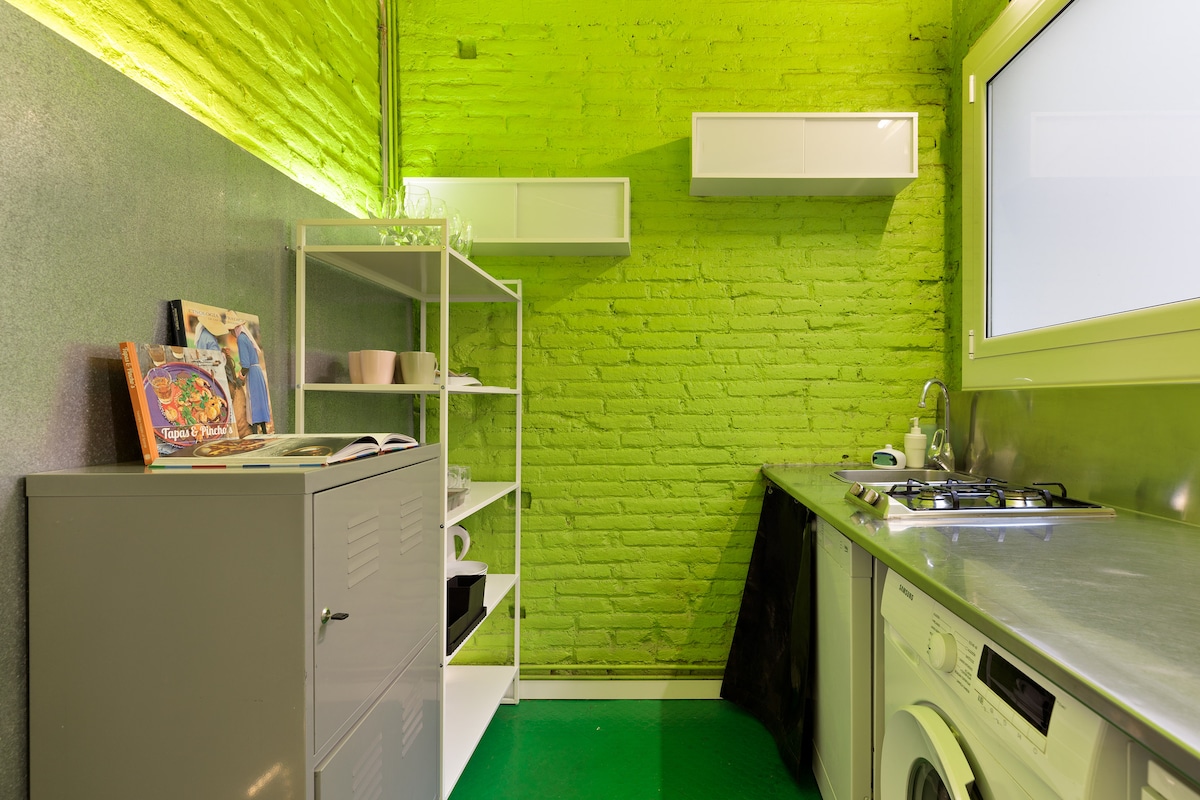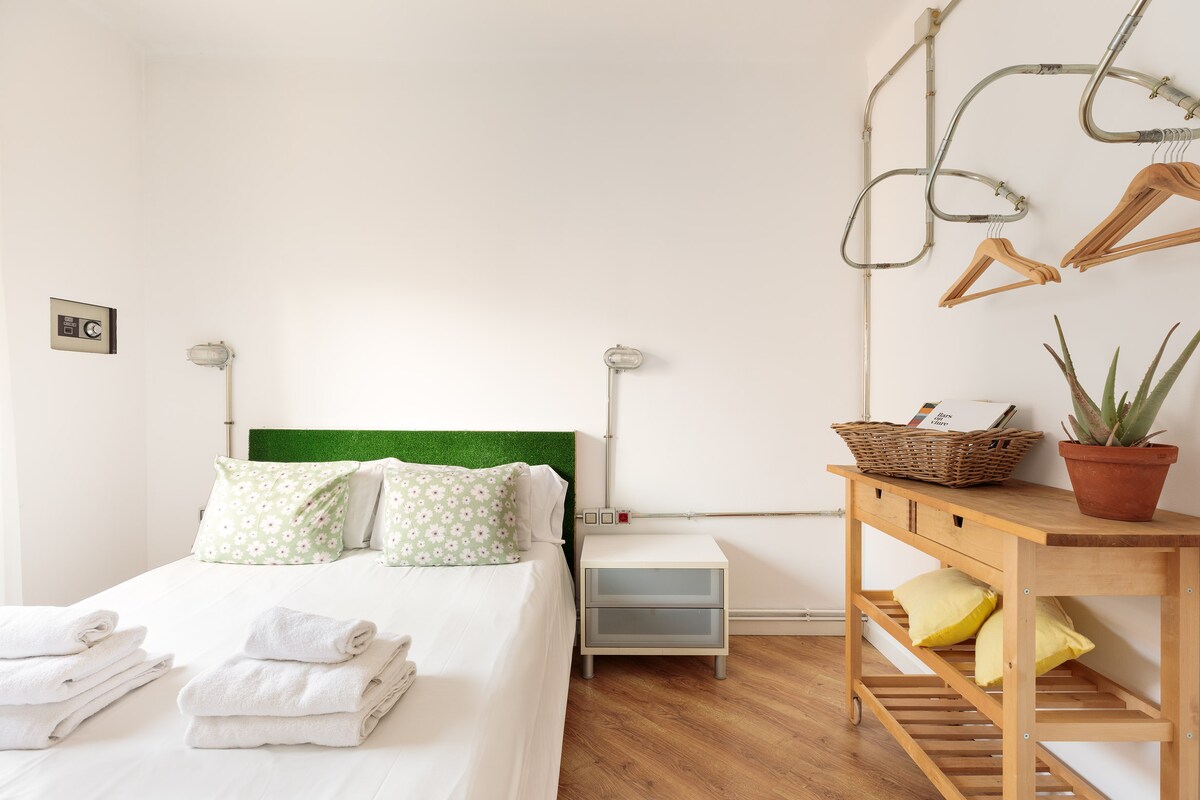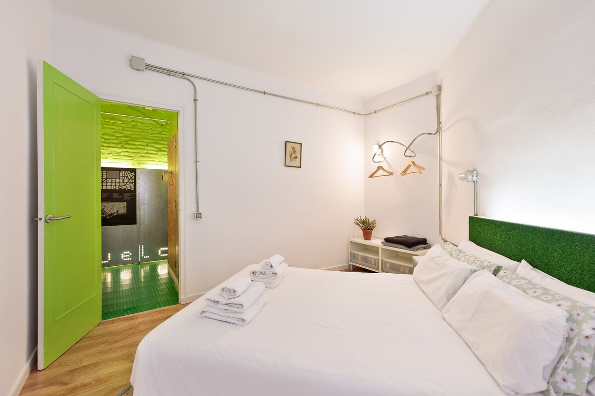 Discover the allure of this dynamic district, where historic architecture meets contemporary culture, crafting an enchanting atmosphere. You can find bus and metro stops really close: “Sant Pau” / “Dos de Maig”, right at your doorstep– you can even spot the metro from your balcony!
