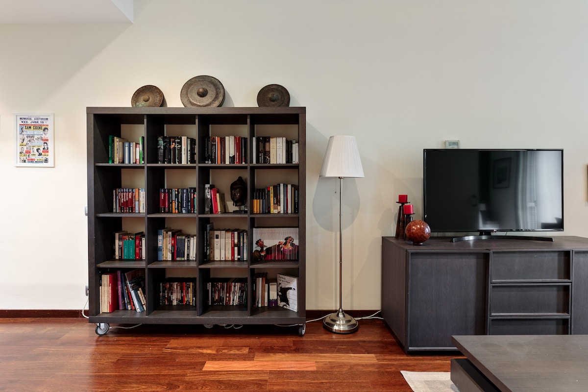 The spacious living area is adorned with characteristic touches and cozy furnishings, providing a welcoming environment to relax and unwind after a day of exploring the city.