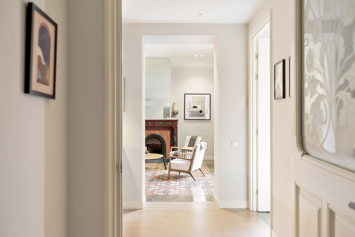 Elevate your visit to Barcelona with a stay in our newly renovated, 2-bedroom/2-bathroom apartment. Nestled on one of Barcelona's most charming yet serene streets, surrounded by quaint bakeries, chocolatiers, and cafés, our apartment offers an unparalleled experience. Housed within a historic building known for its notorious past residents, the property beautifully maintains its original modernist allure alongside characteristic charm, providing a unique backdrop to your stay.