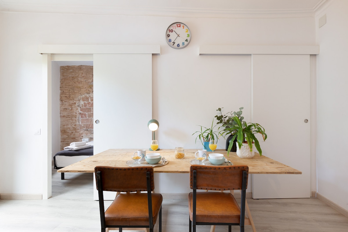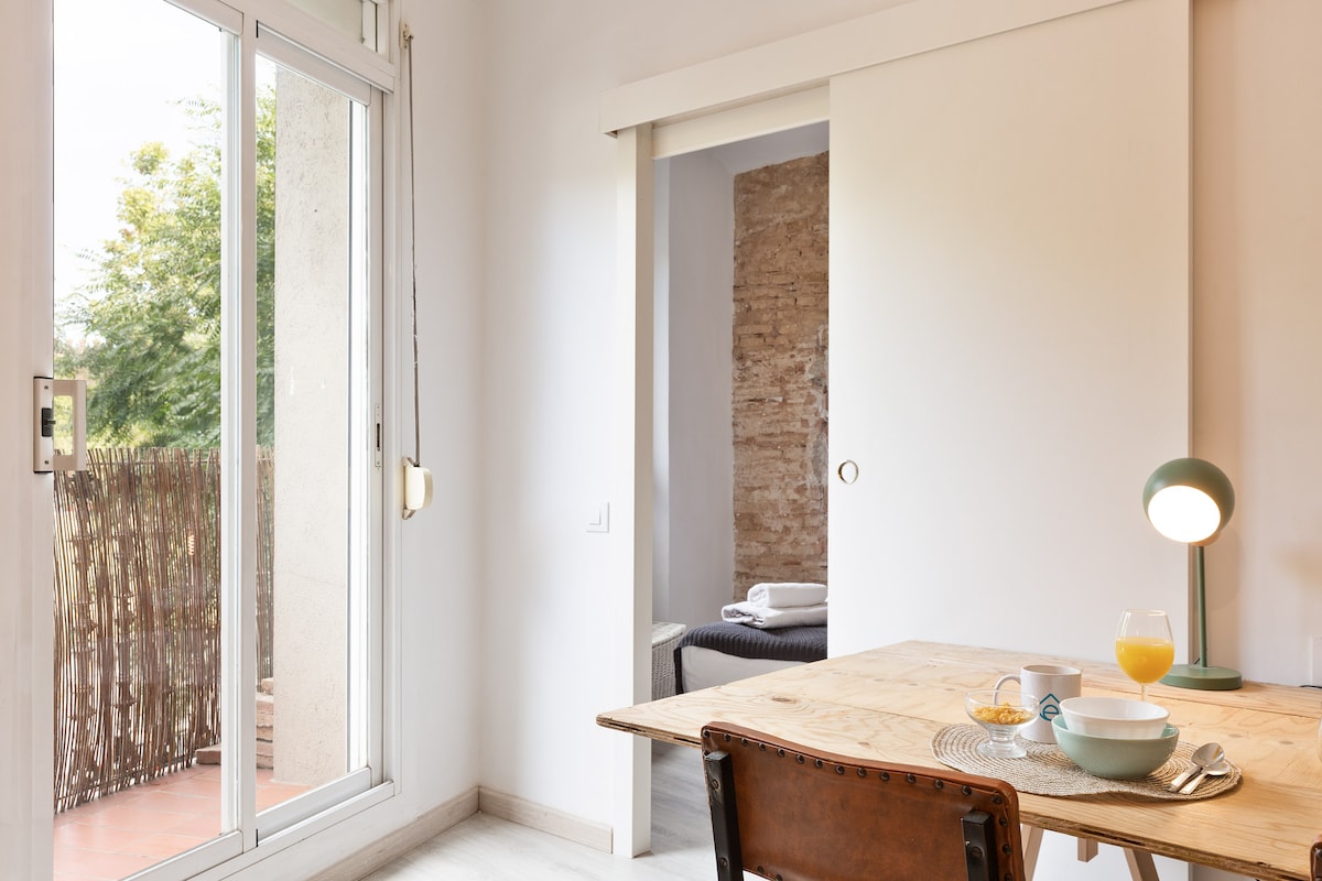 There is a living with balcony and views on the parade between the Arc the Triomf and Parc de la Ciutadella, a bedroom with the same views. A modern bathroom with a huge shower head and an equipped modern kitchen.You'll have an extra small room which you can use as a study room, storage, or a big closet.
