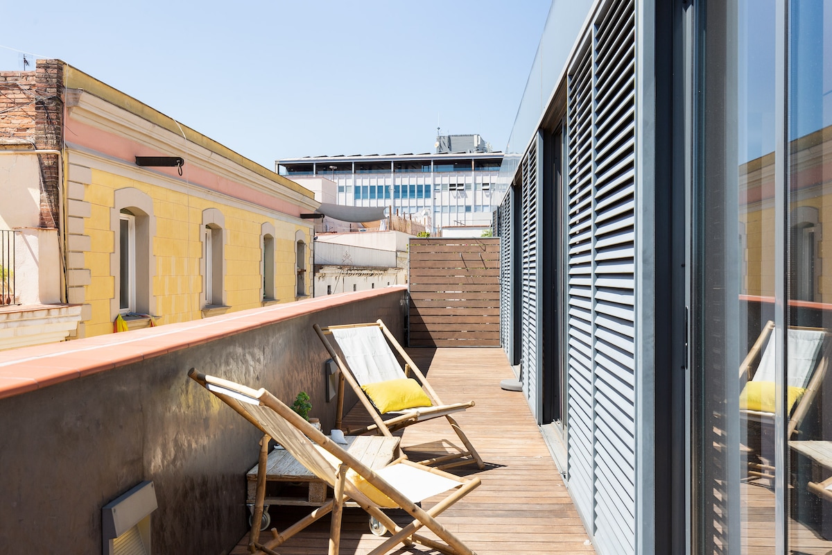 Great apartment with a double bedroom, a bathroom, a kitchen with direct access to the terrace and a super large terrace in the centre of Barcelona.There is central air conditioning/heating and a fridge, washing machine and dishwasher included.