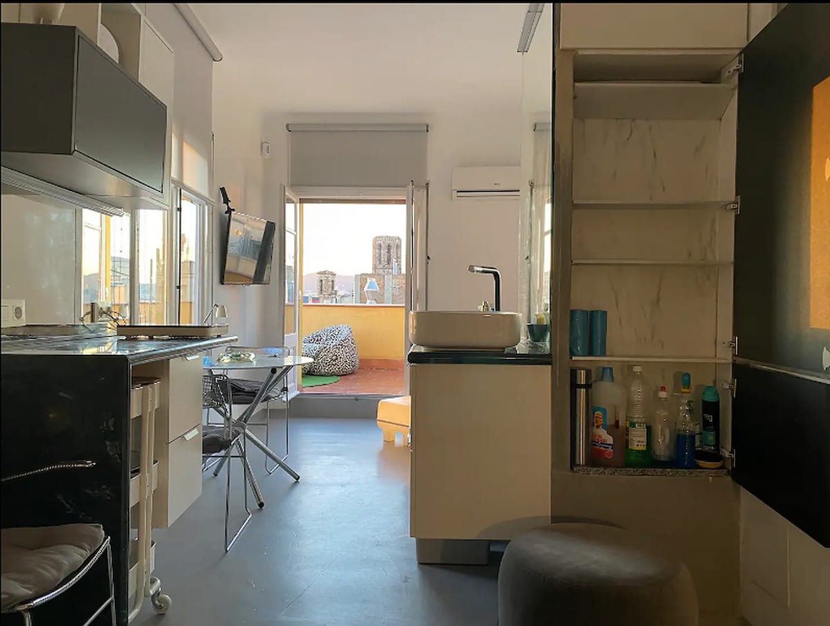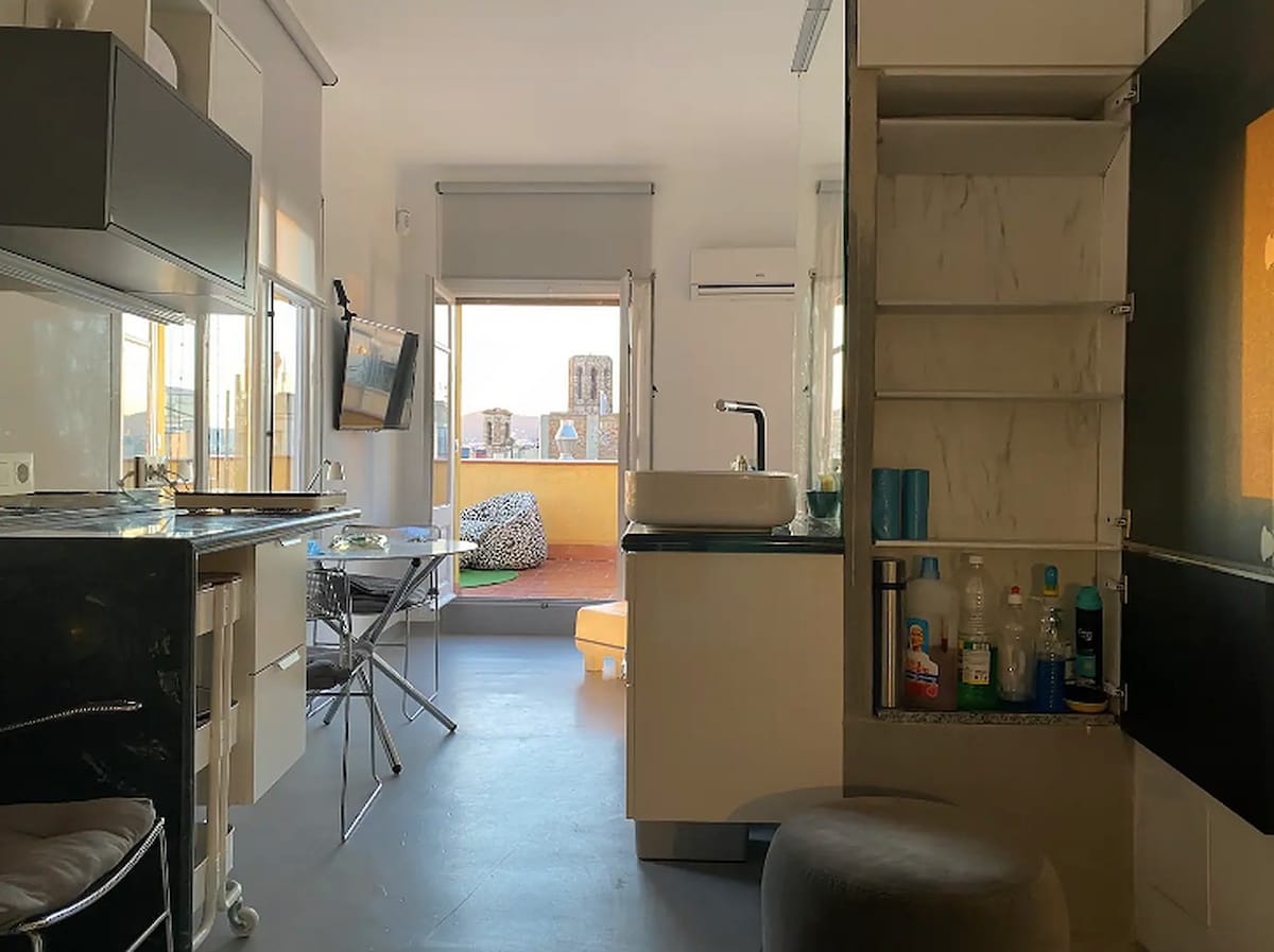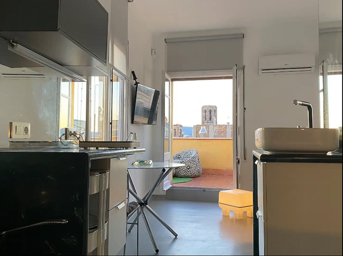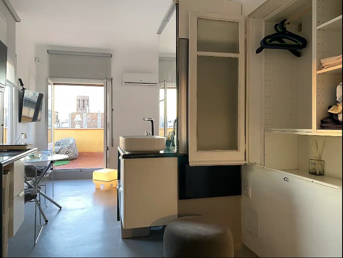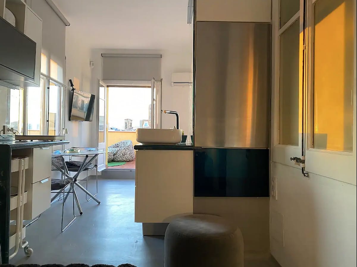 Stylish Studio with a private terrace, composed of a bedroom area (with a double bed) and a bathroom; a strictly functional but well equipped kitchen (refrigerator, heater, portable induction plaque, microwave/grill, toaster, etc.) and a lounge area with a dining table and sofa-bed. The apartment is quiet, not noisy at all. The terrace is big, completely furnished and private, looking onto the old city and his original port.