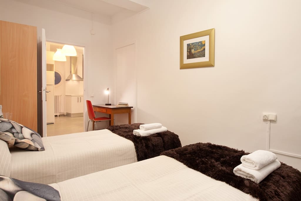 You will be living in the vivid center of Barcelona having all facilities in the surrounding. This is great for spending a few months.Large space, with large center zone for dining and relaxing. Surrounded by the bedrooms.