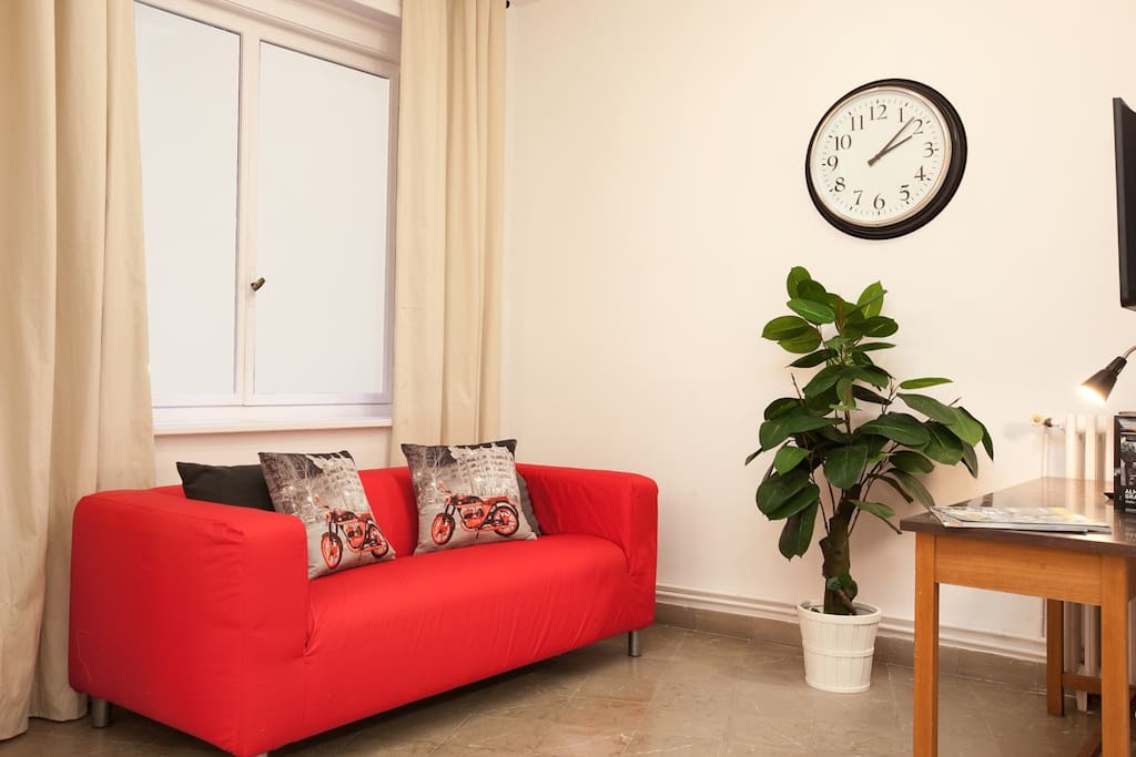The apartment is of basic comfort and located in one of the best areas to be for an internship, study or work. It has an interior orientation for which homeworking is possible but take into account the flat is not very bright.