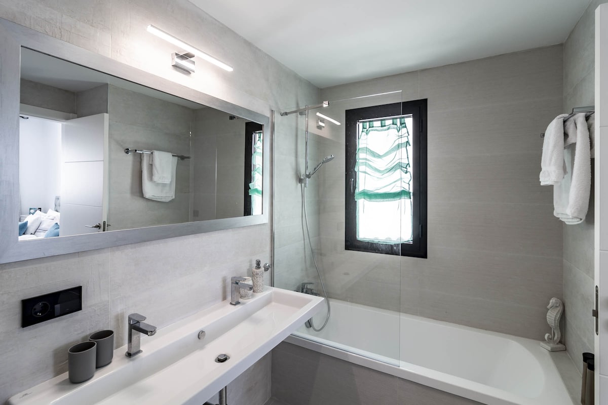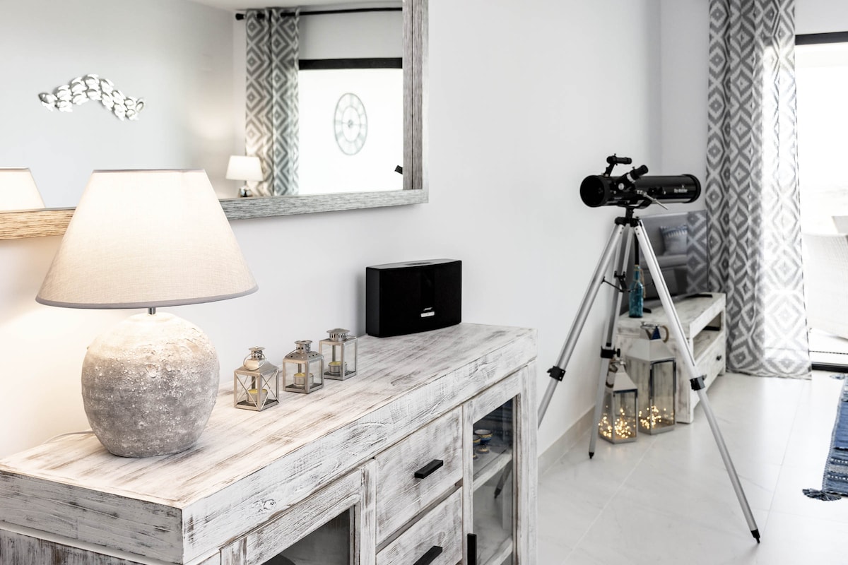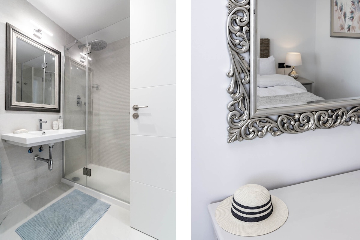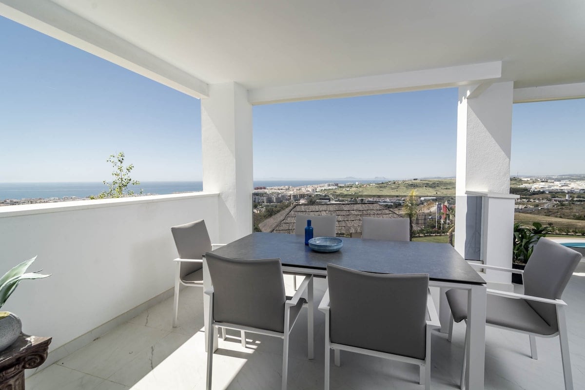 The 120 m² apartment has 3 bedrooms and 3 bathrooms and sleeps 6 people. It has a large 30 m² fully-furnished, south-facing balcony with spectacular views of the sea, Estepona Town, Gibraltar, and North Africa. The apartment is tastefully furnished and has Wi-Fi, Smart TV, Bose Bluetooth music system, air-conditioning, safe, iron, and hairdryer. The building has a lift and a dedicated indoor parking space. The apartment comes with a fully-fitted independent kitchen with refrigerator, freezer, microwave, induction hob, dishwasher, washing machine/dryer, Nespresso coffee machine, toaster, kettle, dishes/cutlery, and kitchen utensils.Guests have the use of two large swimming pools set in attractive grounds that are open year-round, with sun loungers and day beds, and an on-site cafe/cocktail/snack bar. Guests can also use the extensive facilities of Los Reales Sports Club, which is based at the resort, including a state-of-the-art gymnasium with free fitness classes and saunas, and tennis and padel courts (fee payable).