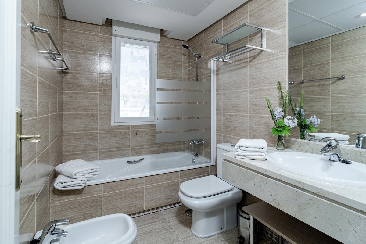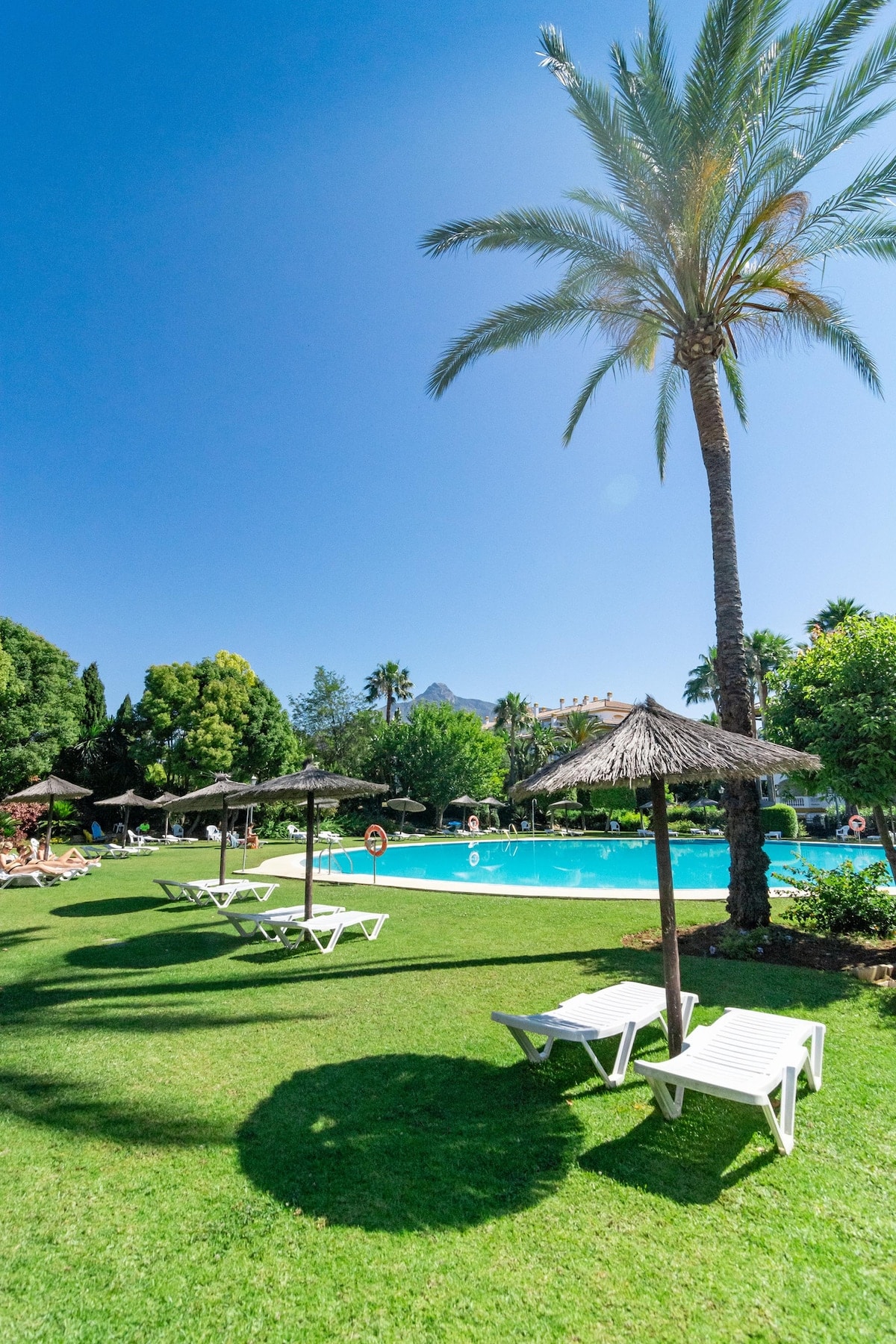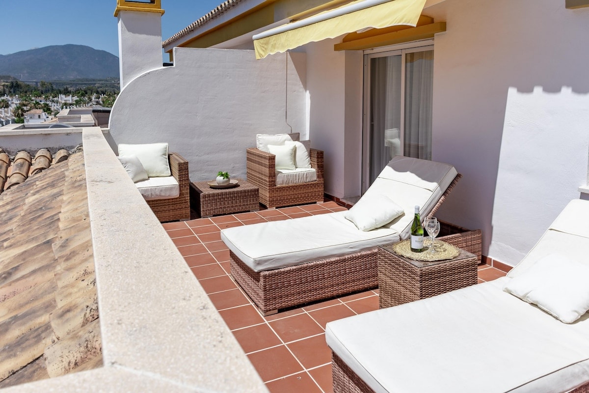 The property is located 500 m supermarket "Mercadona", 1 km city "Puerto Banus", 2 km sand beach "Playa Puerto Banus", 3 km golf course "Aloha Golf club", 3 km thermal springs "Ocean Club", 8 km city "Marbella", 58 km international airport "Malaga aeropuerto" and it is located in a well connected zone and in a suburb.The accommodation is equipped with the following items: lift, 59 m² terrace, washing machine, dryer, iron, internet (Wi-Fi), hair dryer, central heating, air-conditioned, swimming pool communal, garage in the same building, Smart TV.