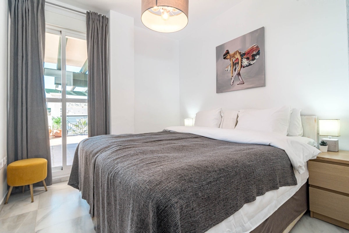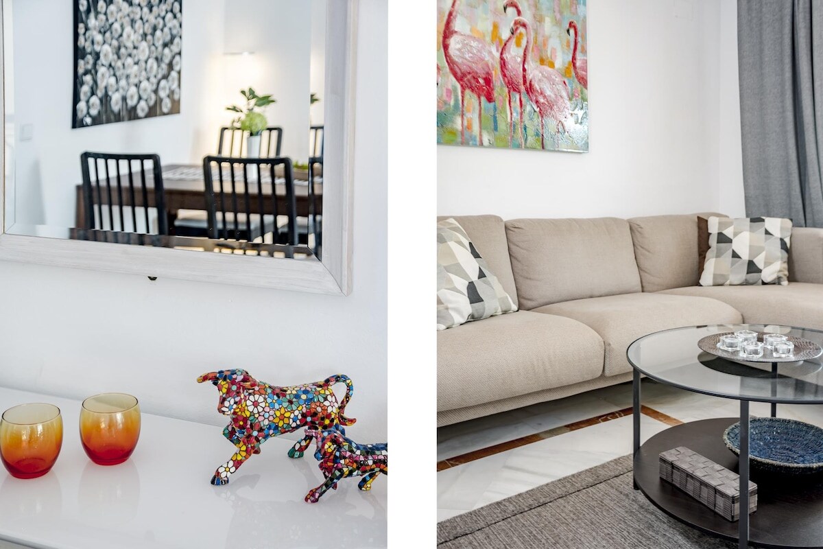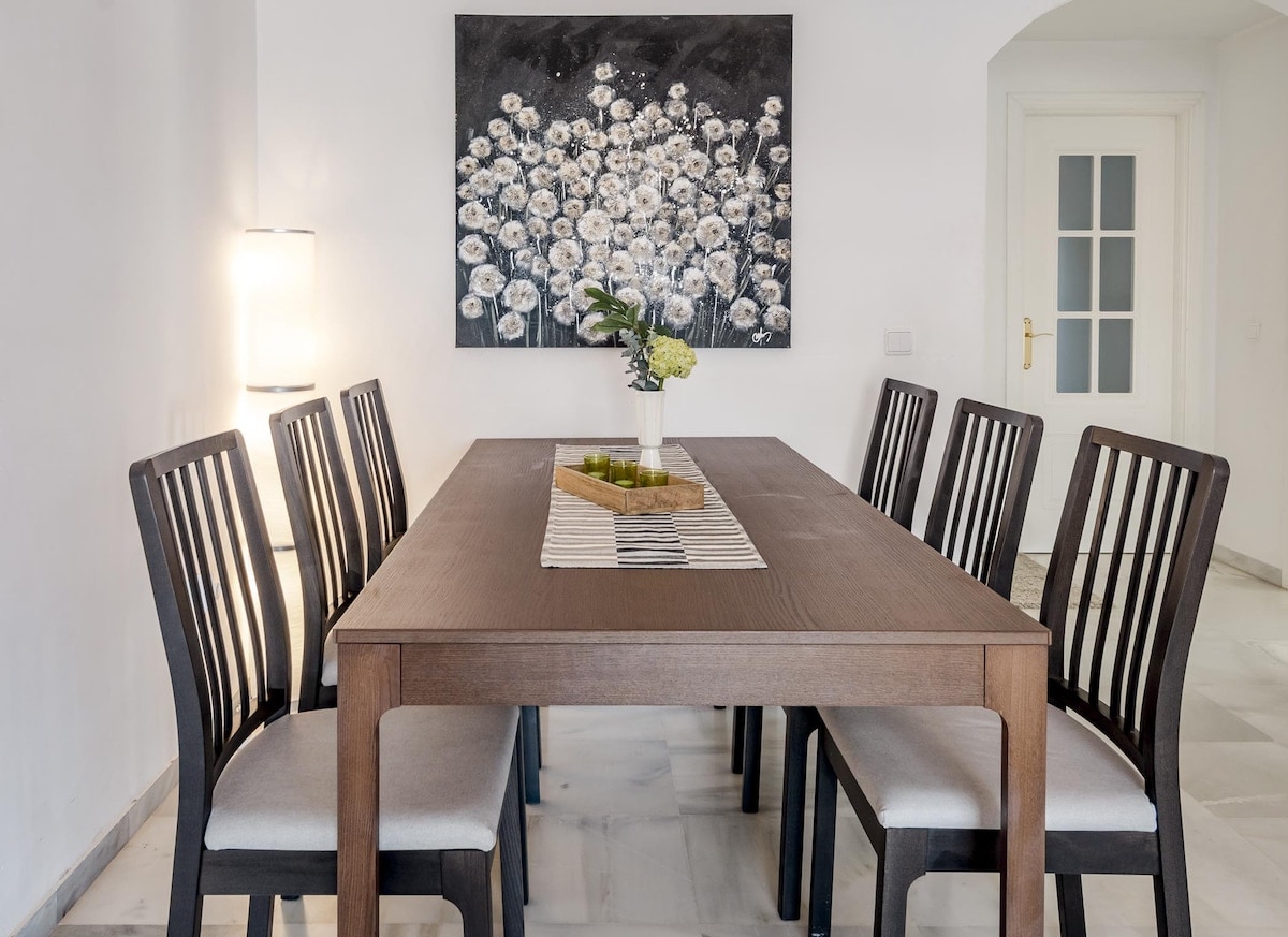 The apartment in Nueva andalucia has 3 bedrooms and has capacity for 6 people. The apartment is tastefully-furnished, is spacious, and is 130 m². It has views of the mountain and the garden. The property is located 1 km from Ocean club sand beach, 2 km from El Gaucho from the restaurant, 2 km from mercadona supermarket, 3 km from Los Naranjos beach club golf course, 9 km from the city, 59 km from malaga airport airport. The house is situated in a well connected neighborhood in a suburb.
