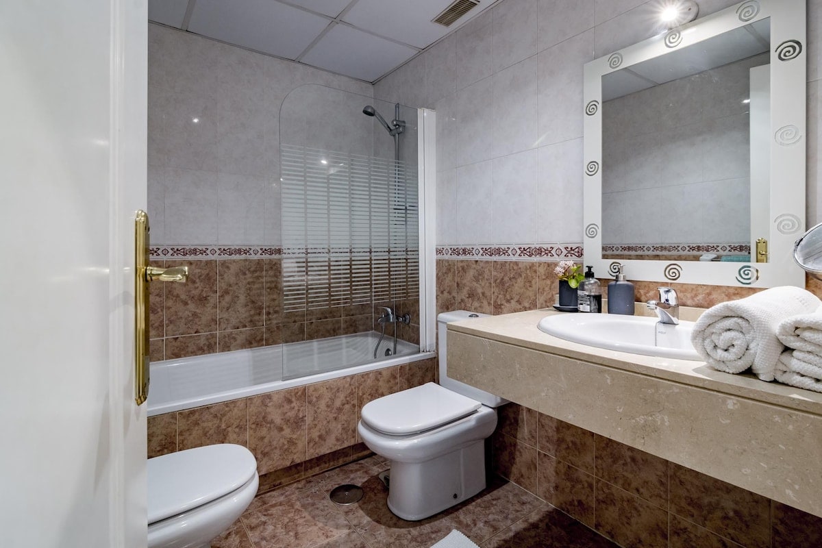 The accommodation is equipped with the following items: lift, garden, garden furniture, 77 m² terrace, iron, safe, internet (Wi-Fi), hair dryer, central heating, air conditioning, communal + children’s swimming pool, garage in the same building, TV, TV satellite (Languages: Spanish, English, German, Dutch, French, Russian, Swedish, Norwegian).