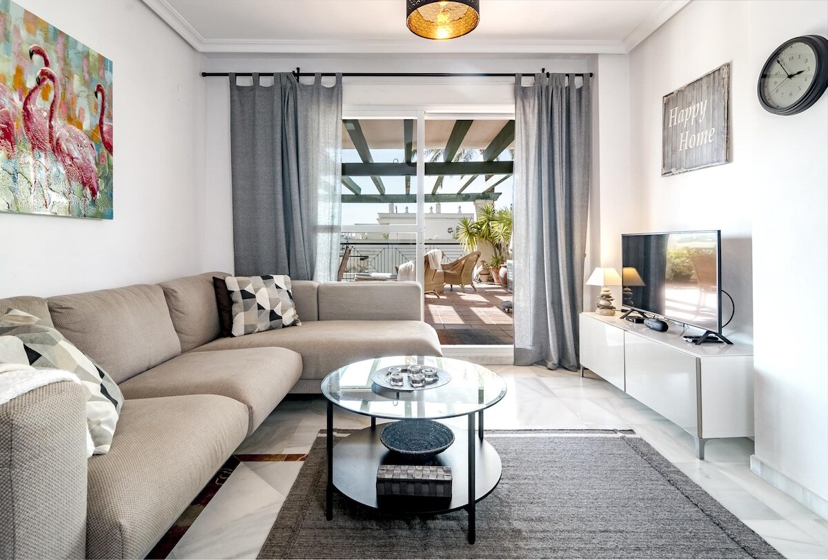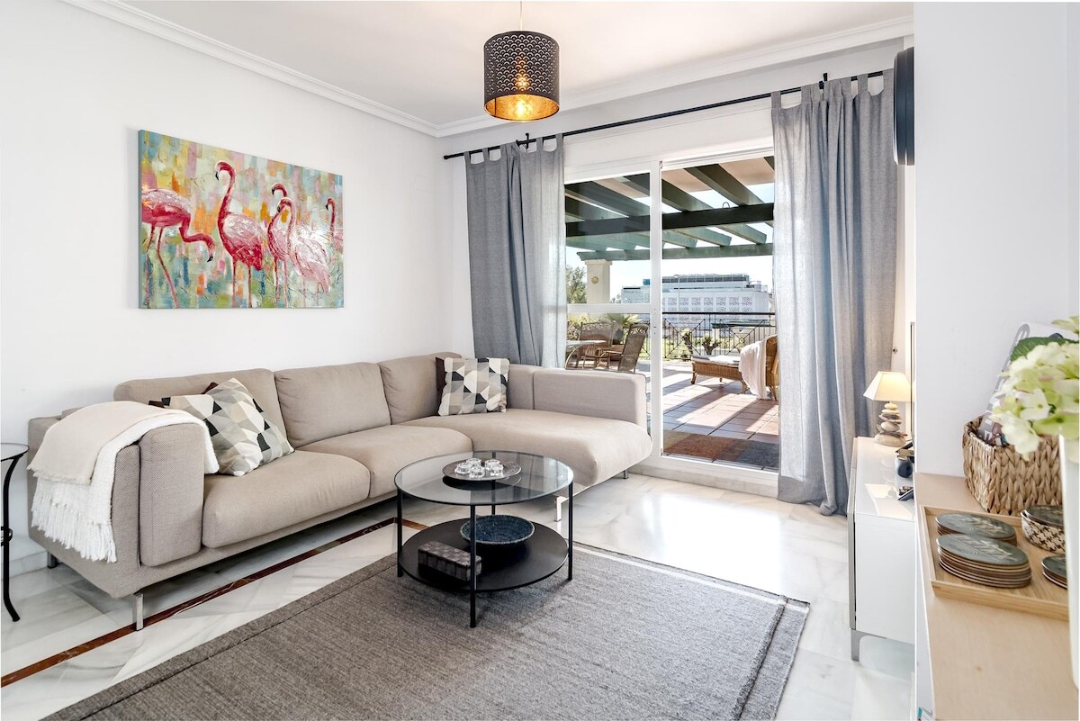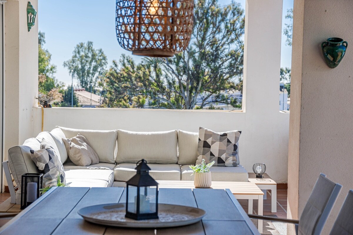 The apartment in Nueva Andalucia has 3 bedrooms and has capacity for 6 people. The apartment is tastefully furnished, is spacious, and is 130 m². It has views of the mountain and the garden.
