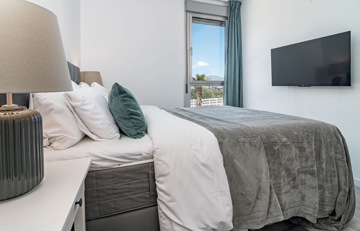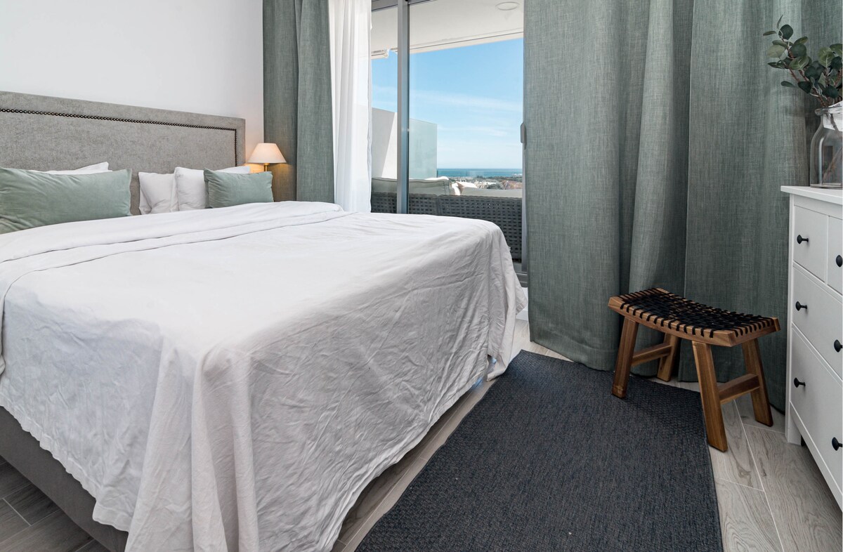 The apartment in Estepona has 3 bedrooms and capacity for 6 people.