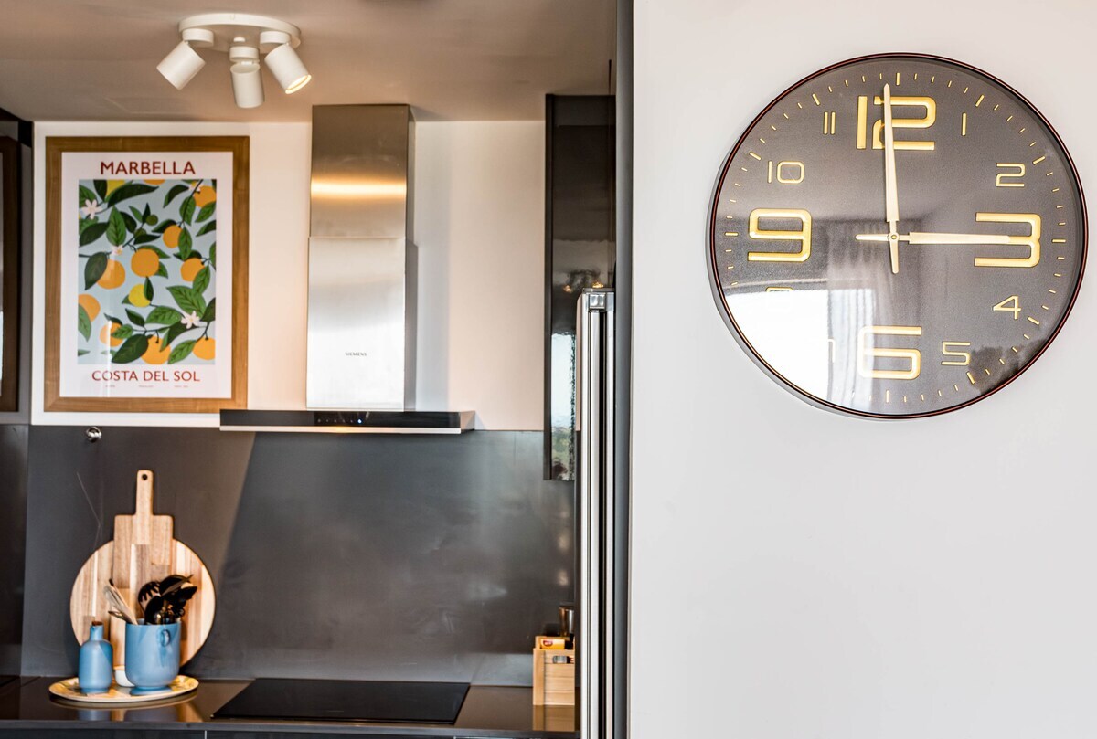 The open plan kitchen, of induction, is equipped with refrigerator, microwave, oven, freezer, dishwasher, dishes/cutlery, kitchen utensils, coffee machine, toaster, kettle and juicer.Included services: