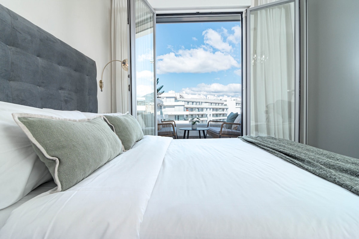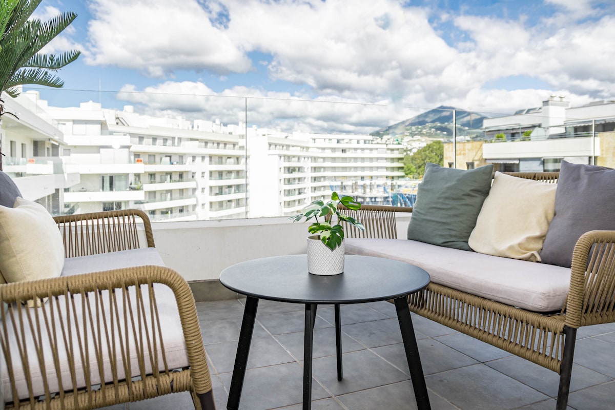 The apartment in Nueva Andalucía has 2 bedrooms and accommodates up to 4 people. It is a tastefully furnished, newly built property with a size of 76 m². The apartment offers mountain views and is located in a family-friendly neighborhood within a quiet suburb.