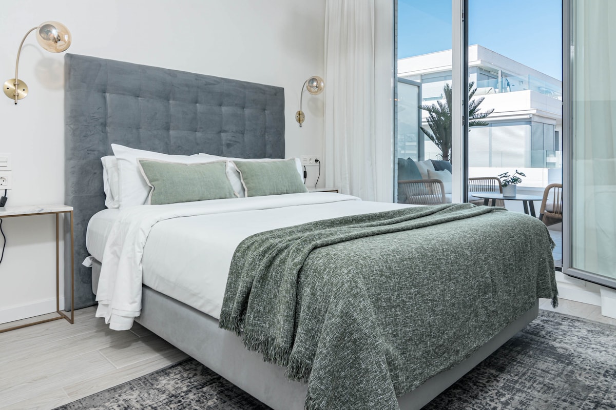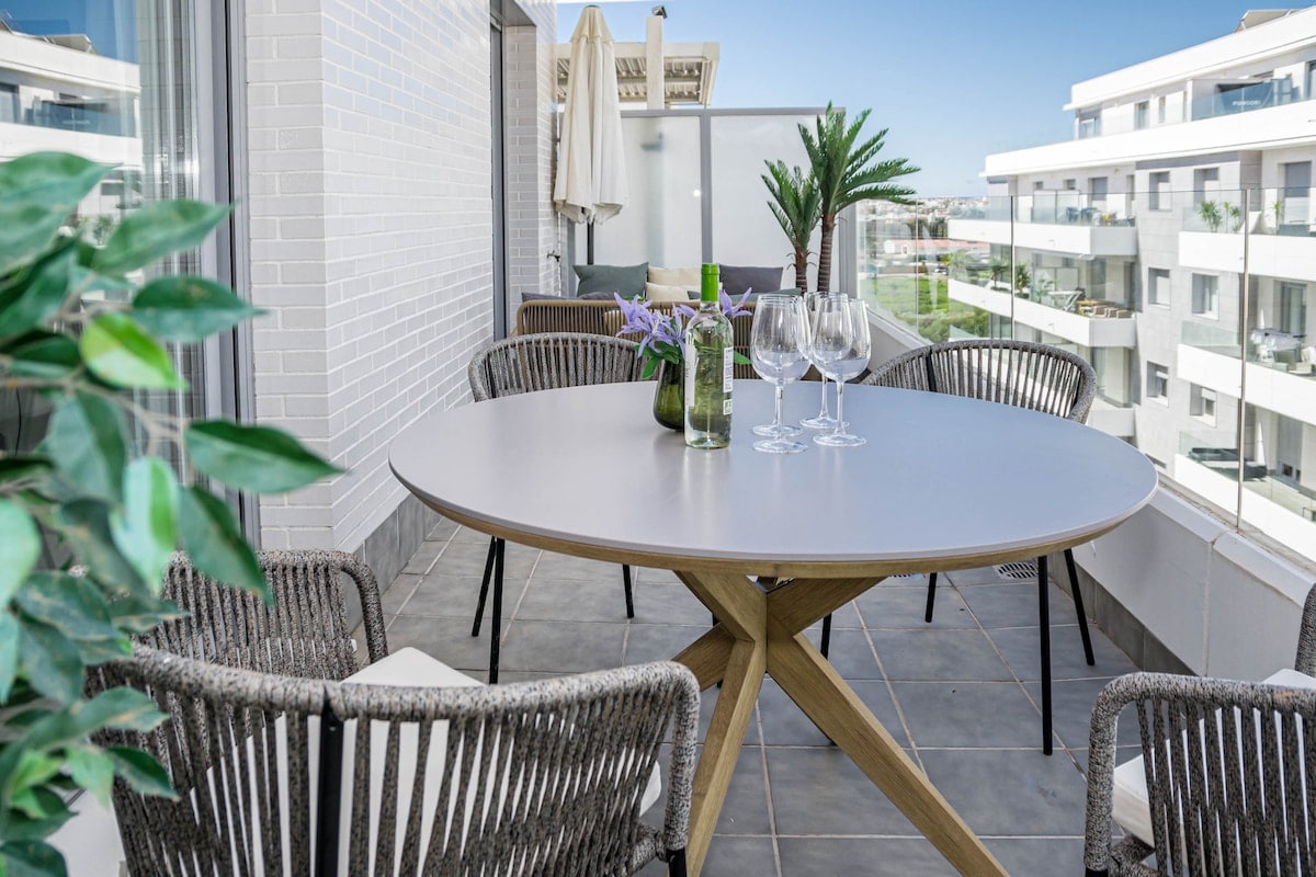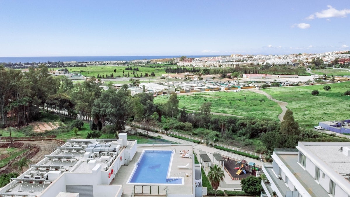 The apartment in Nueva Andalucía has 2 bedrooms and accommodates up to 4 people. It is tastefully furnished, newly built, and measures 76 m². The apartment offers views of the mountain. The house is situated in a family-friendly neighborhood in a suburb.