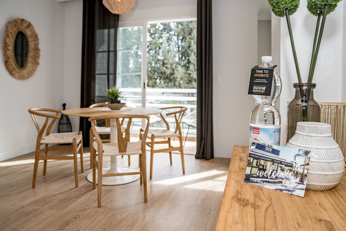 The property is located in a charming green area, 500 m from a supermarket, 500 m from "La Sala" restaurant, 600 m from Puerto Banus city, and 1 km from Puerto Banus sand beach.It is equipped with the following items:
