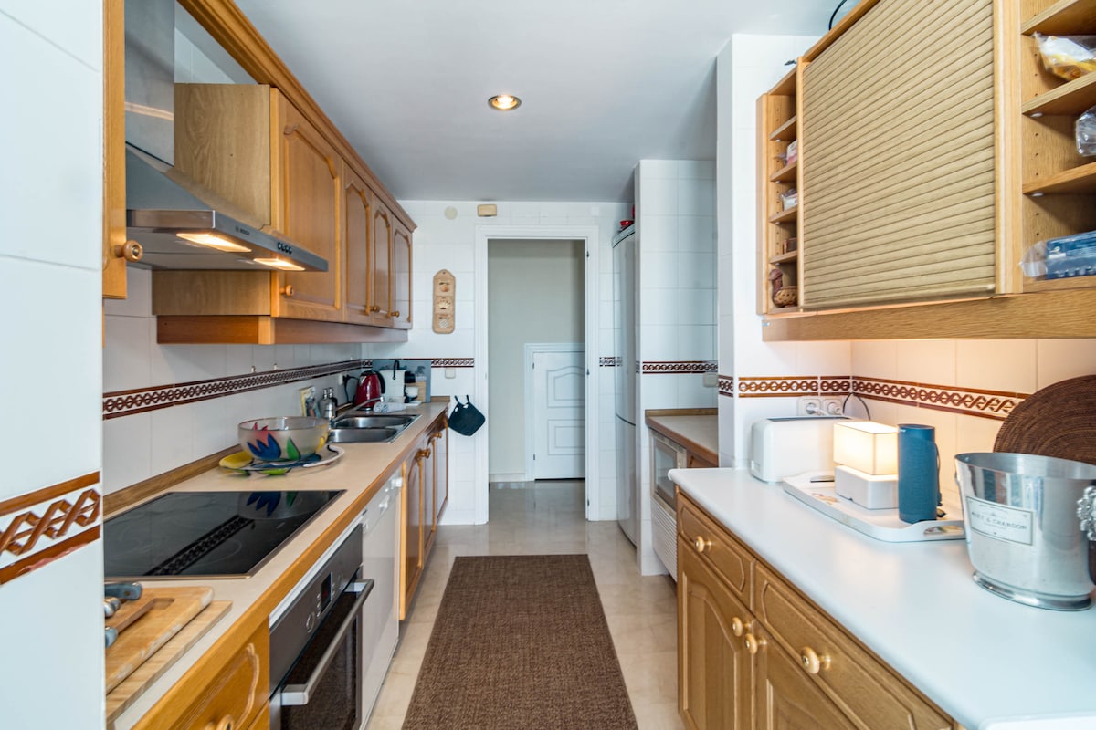 The independent kitchen, with induction hob, is equipped with refrigerator, microwave, oven, freezer, dishwasher, dishes/cutlery, kitchen utensils, coffee machine, frying pan, toaster, kettle and juicer.Included services - Swimming pool - Bed linen - Internet Access - Heating - Towels - Air conditioning.