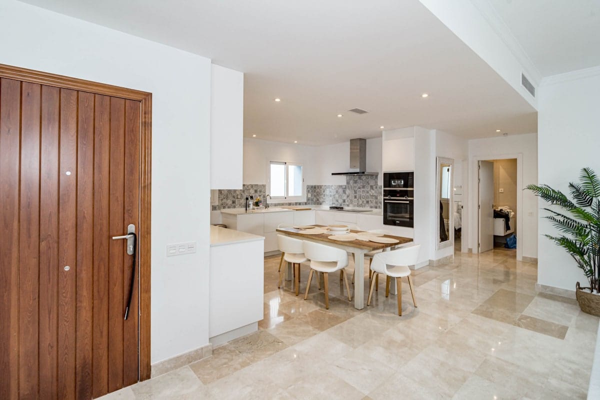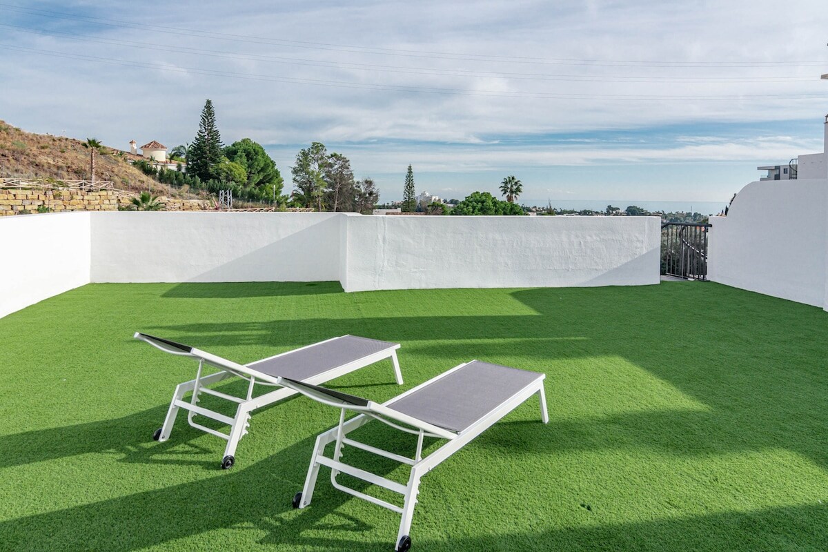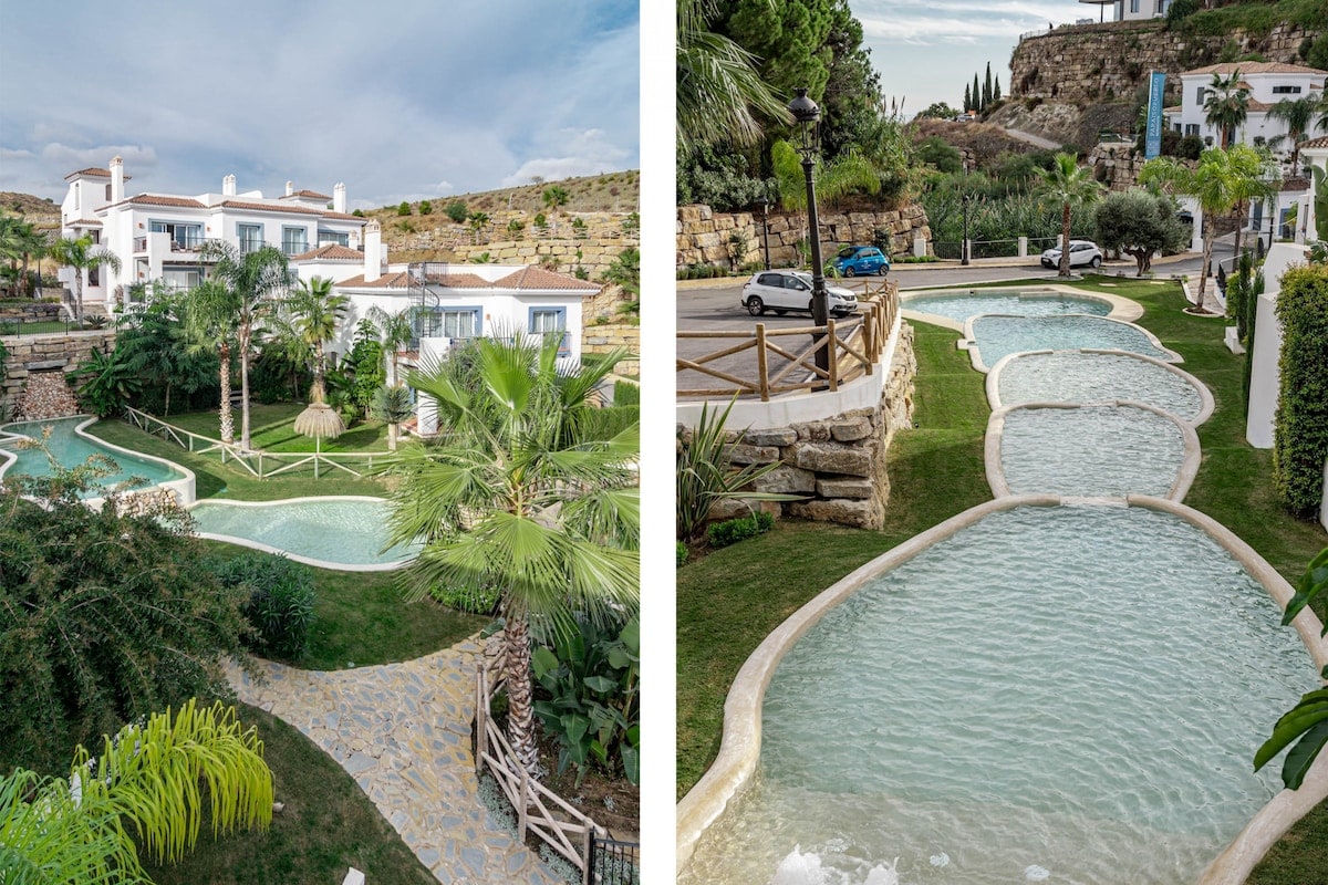 The flat is Paraiso Pueblos is beautiful, and the rooftop balcony has a great view of the sea. The amenities in the urbanisation include a cafe and many pools, unfortunately only the small pool in the gym is heated so we could only use that one during our stay as the outdoor pools were too cold. As others have mentioned you have to pick up the key in Marbella which is a 15 minute drive from the flat. If you are coming from the Malaga airport it is on the way so it isn’t a big deal, just inconvenient. Otherwise the flat is absolutely perfect for a long or short stay.