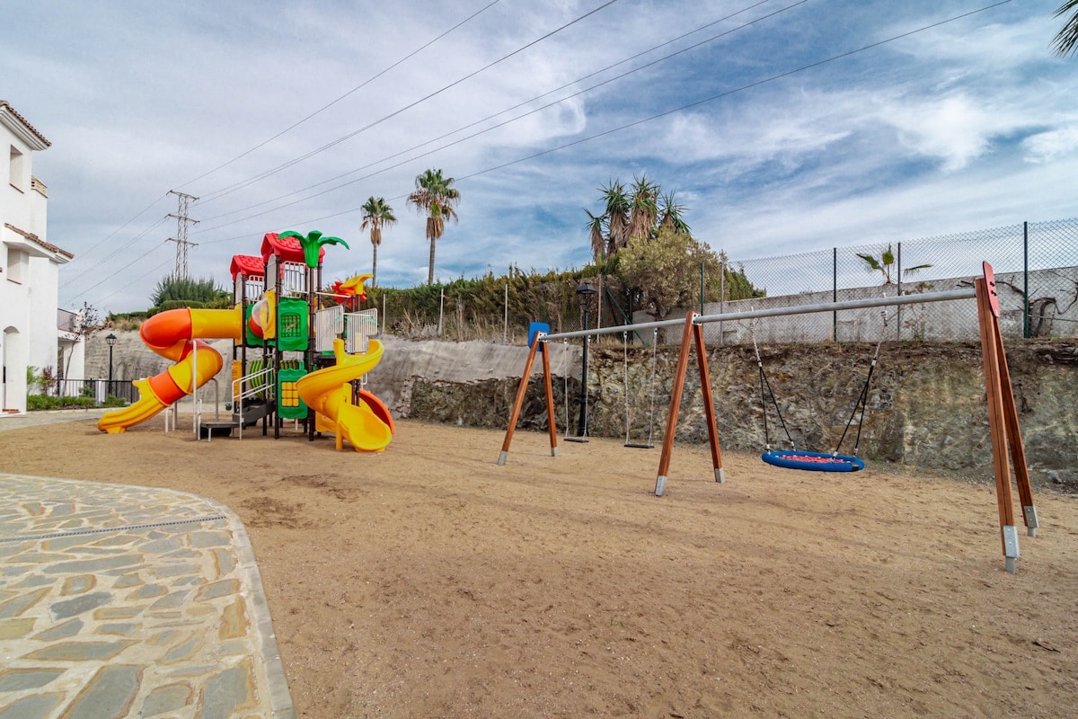 The accommodation is equipped with the following items: lift, garden, garden furniture, fenced garden, terrace, washing machine, dryer, iron, internet (Wi-Fi), hair dryer, balcony, childrens area, gym / fitness centre, central heating, air-conditioned, swimming pool communal + children's, garage in the same building, 1 Tv, satellite tv (Languages: Spanish, English, German, Swedish).The open plan kitchen, electric, is equipped with refrigerator, microwave, oven, freezer, dishwasher, dishes/cutlery, kitchen utensils, toaster and kettle.