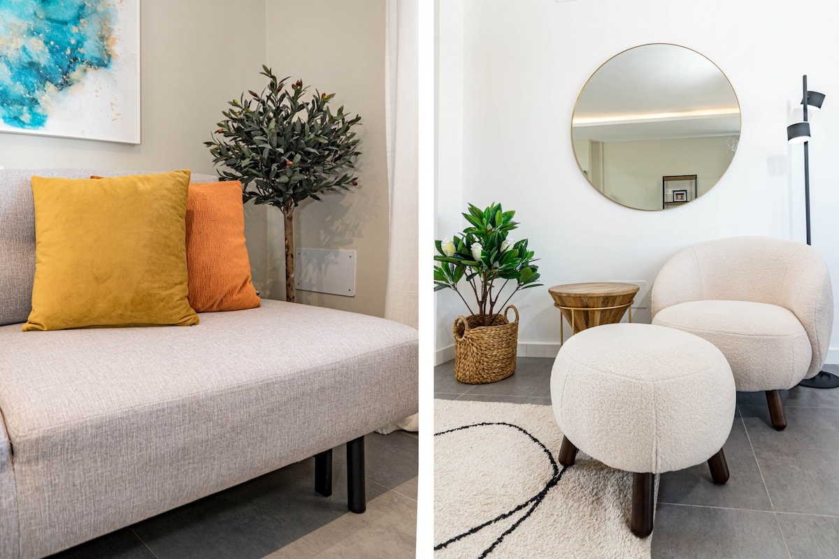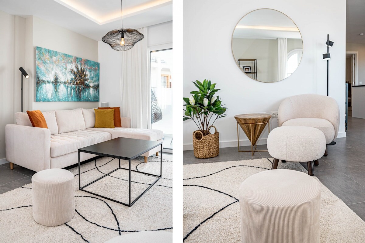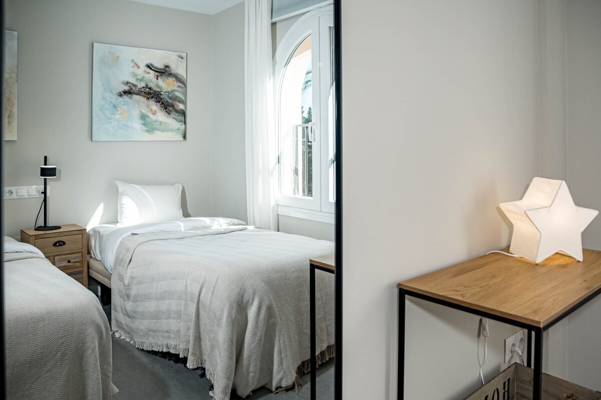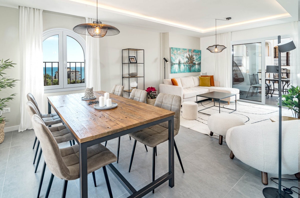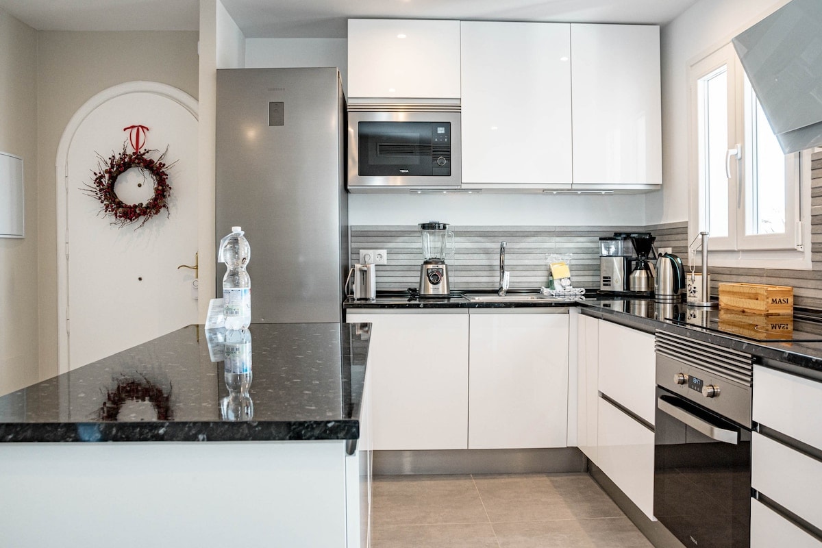 We would like to say a Huge Thankyou for having us, We are a family of 5, Older children and this apartment was perfect as it had 2 bathrooms & spacious rooms with comfy beds & lovely aircon. A seperate room with a sofa bed that pulls out. The kitchen area is lovely with a little island and it has everything you need from salt & pepper to coffee liners. The two balconies are lovely & have everything you need catching sun both times of the day for your morning coffee with sea view and washing to dry. Its a trendy, Well interiored apartment with all the modern technology it felt so homely & safe. The location is fantastic its right near the pool only a walk down and through the gate, Sun loungers available in the storage by pool ( always plenty) Its about 5 min walk to supermarket in under arcade and taxi or bus to la cala for market on a wed and sat. We walk to some restaurants about 20min away along the beach called Divinchi - (Italian) highly recommend. Beach 5 min away over road. ☀️