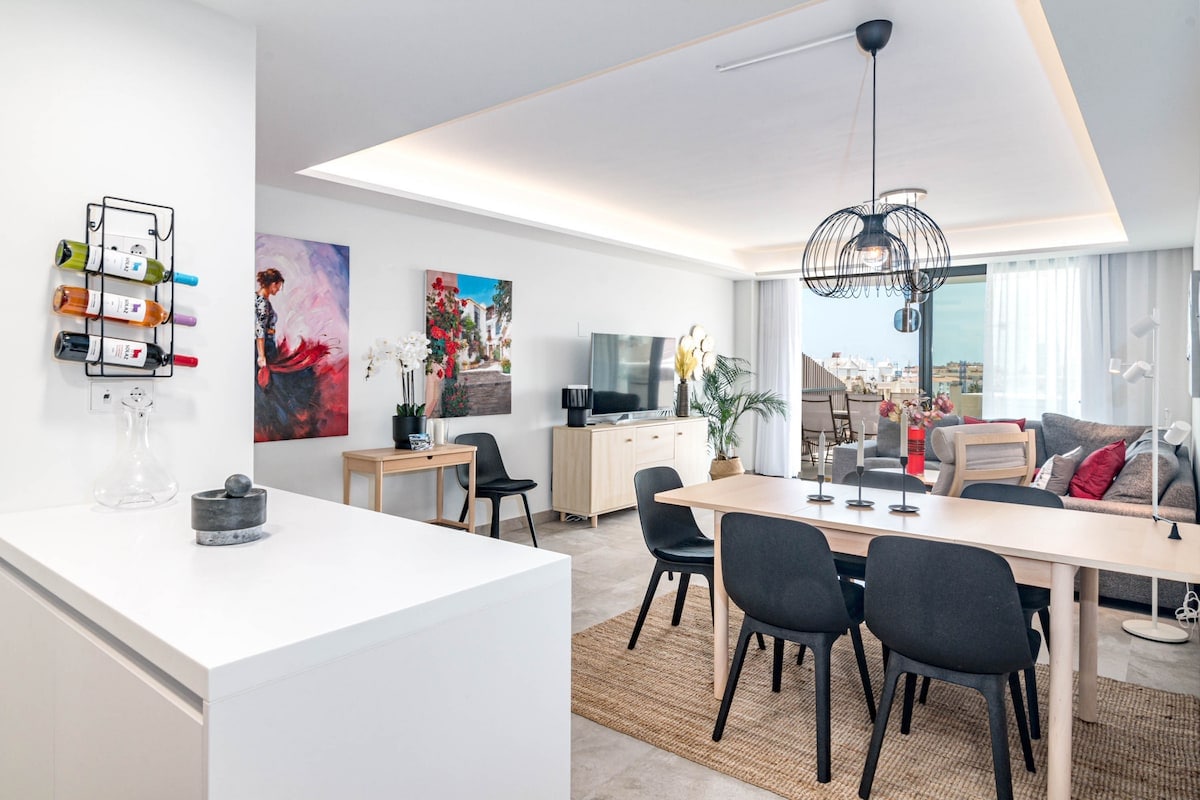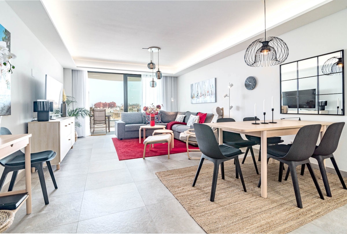 The apartment in Estepona has 3 bedrooms and has capacity for 6 people.The apartment is nice, is a new build, and is 98 m². It has views of waterfront and the mountain.