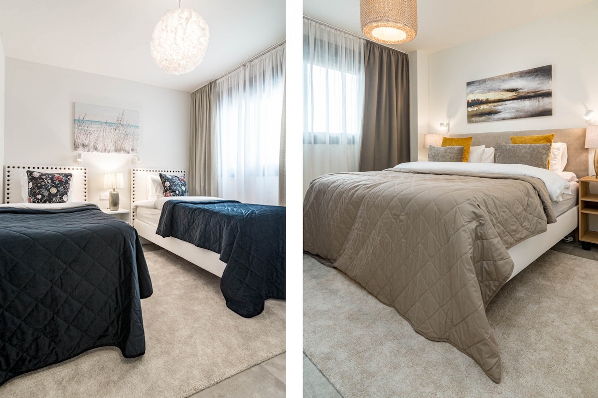 Roomservices Holiday Homes is in charge of professionally managing this property. We provide you with airport transfers, which are the best way to get to your vacation home. Our drivers will be waiting for you at the exit, helping you with your luggage, and taking you directly to the property. If you need a baby cot or highchair for the smallest member of your family, we can provide you with that too. Before your arrival, we send you our guidebook, where you will find everything, such as check-in procedures, how to get to the property, what to do in the area, and much more. We are here for you 24/7.