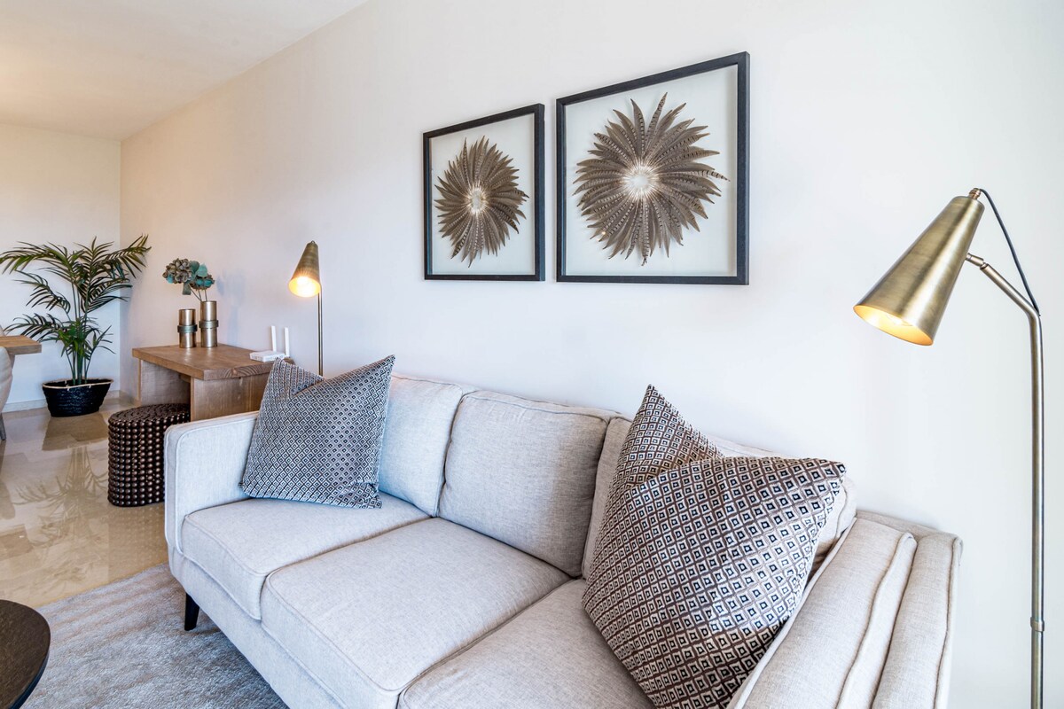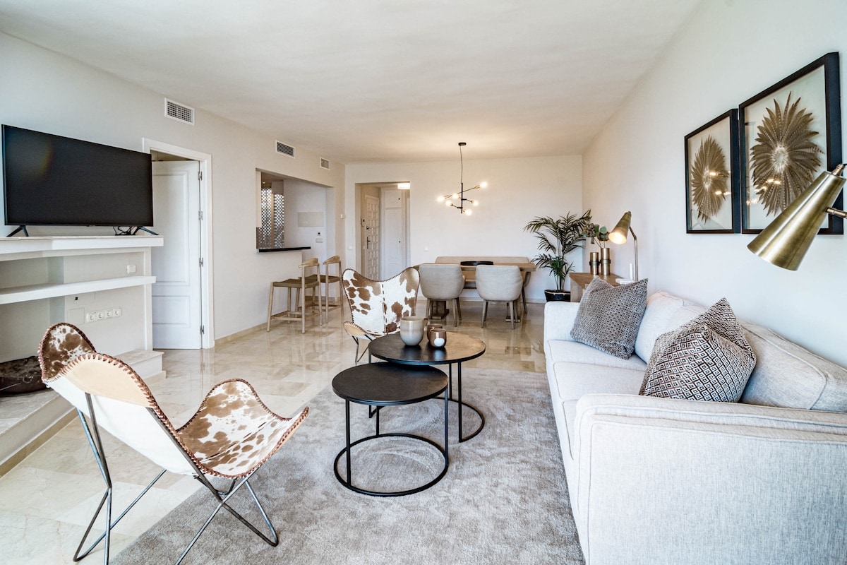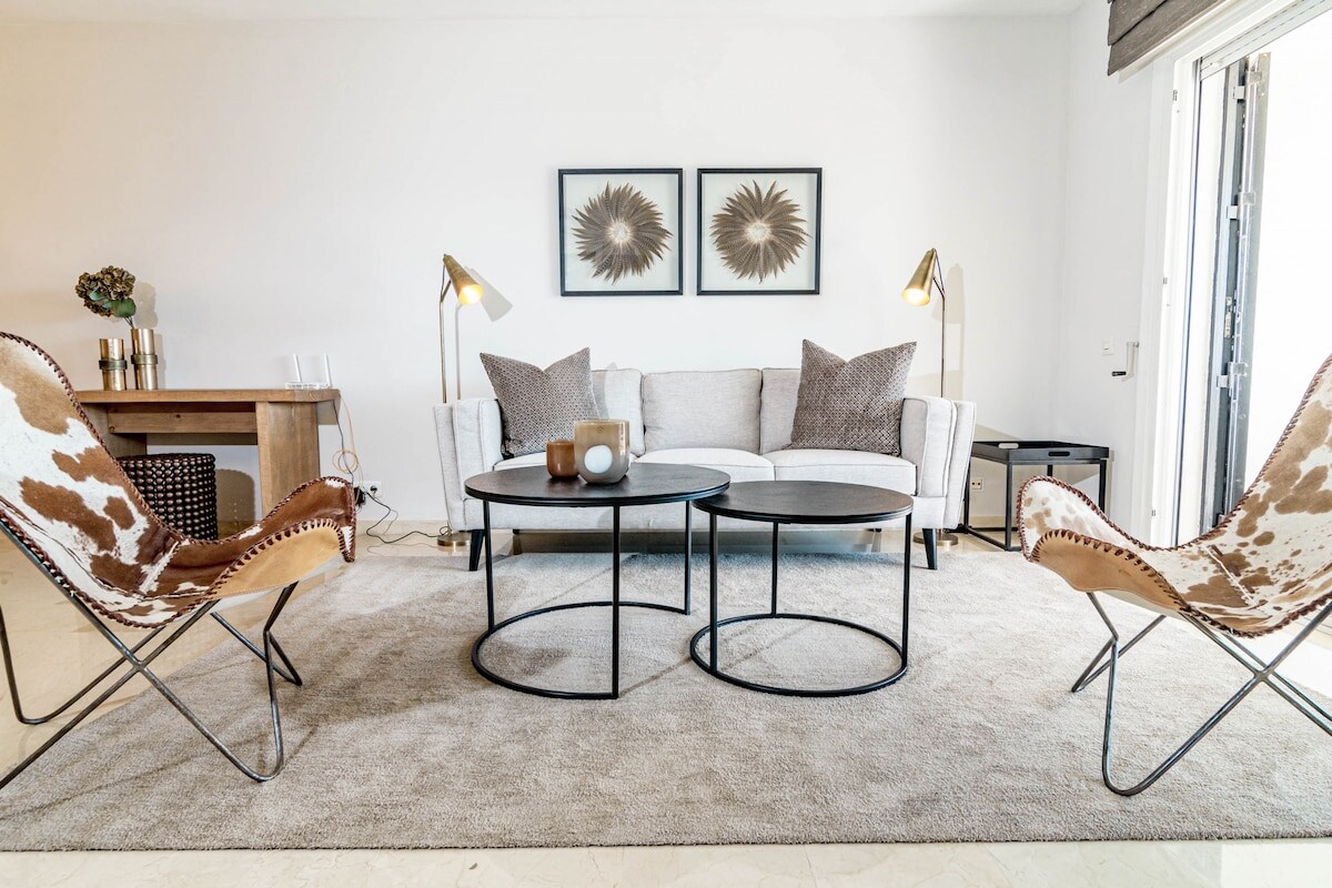 we loved the appartement: location , style ,the community and the view are amazing , very quiet and confortable . Easy check-in process. welcomîng and friendly staff. Appartement very clean except stains on sofa and dinning chairs . i will definitely book it again on my next visit to Marbella.